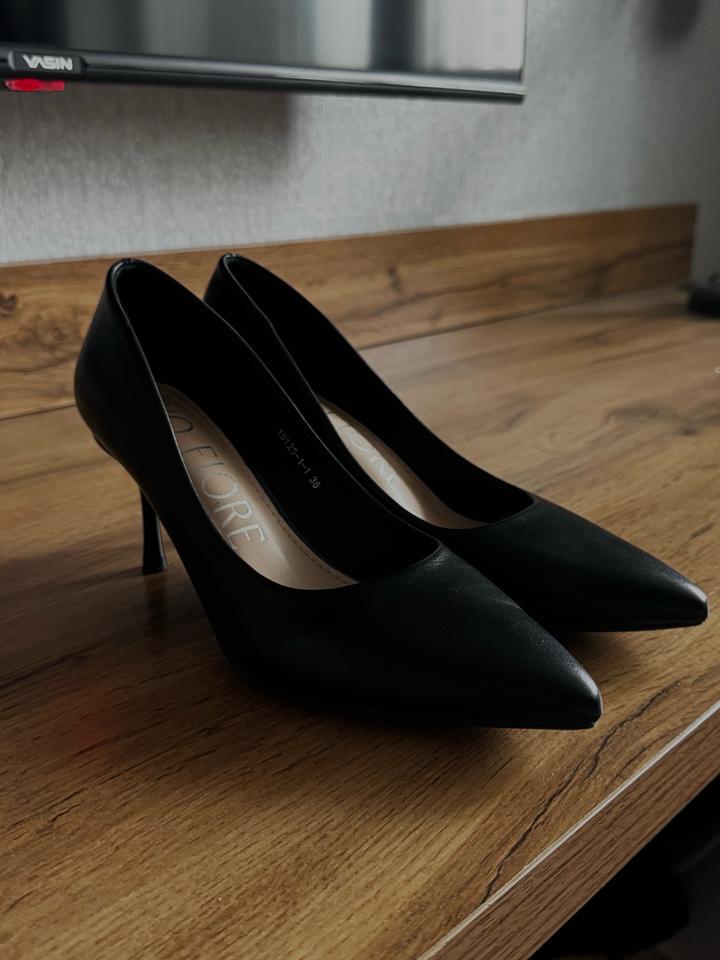 Очень красивая, классическая модель: острый нос, аккуратная шпилька, идеально подойдут как под офисный образ, так и на выход. Визуально делают ногу изящнее и стройнее. Продаю, потому что поняла, что не умею ходить на шпильках — поэтому пусть радуют ту, кто чувствует себя уверенно на каблуках 😊 Размер: 36 Цвет: чёрный Материал: экокожа В комплекте есть родная коробка. Артикул: 564683