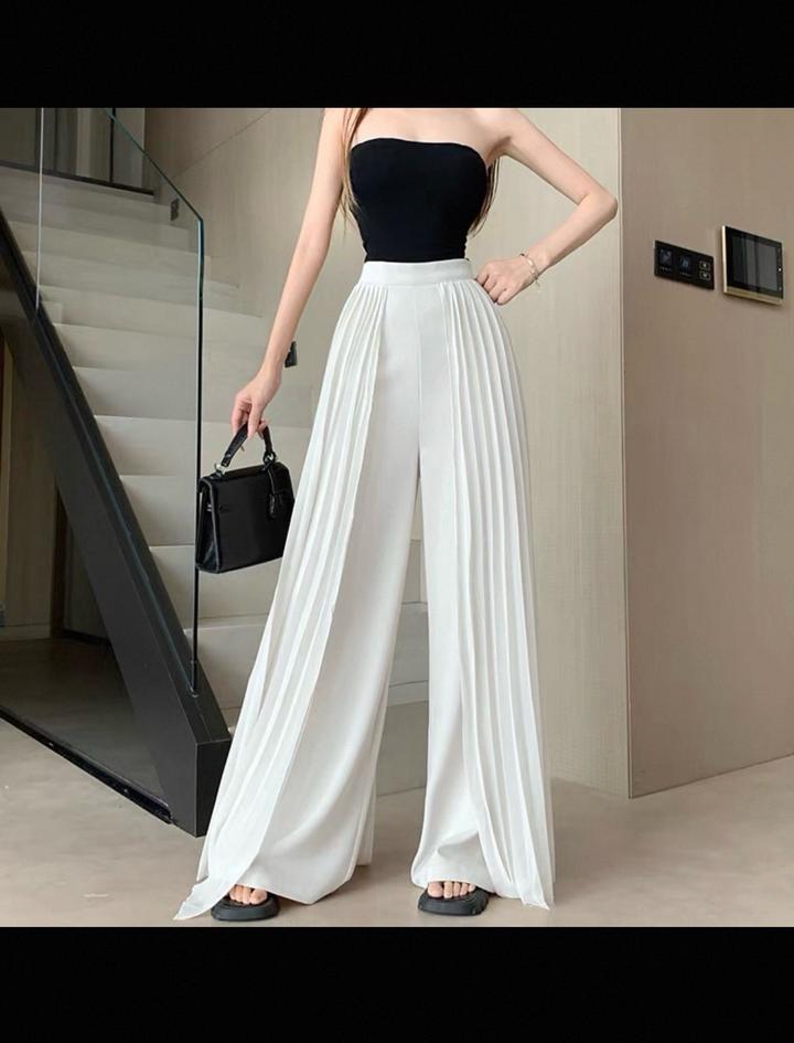 Широкие белые брюки с плиссировкой, Высокая посадка, визуально удлиняют ноги, очень стильные. Артикул: 564693