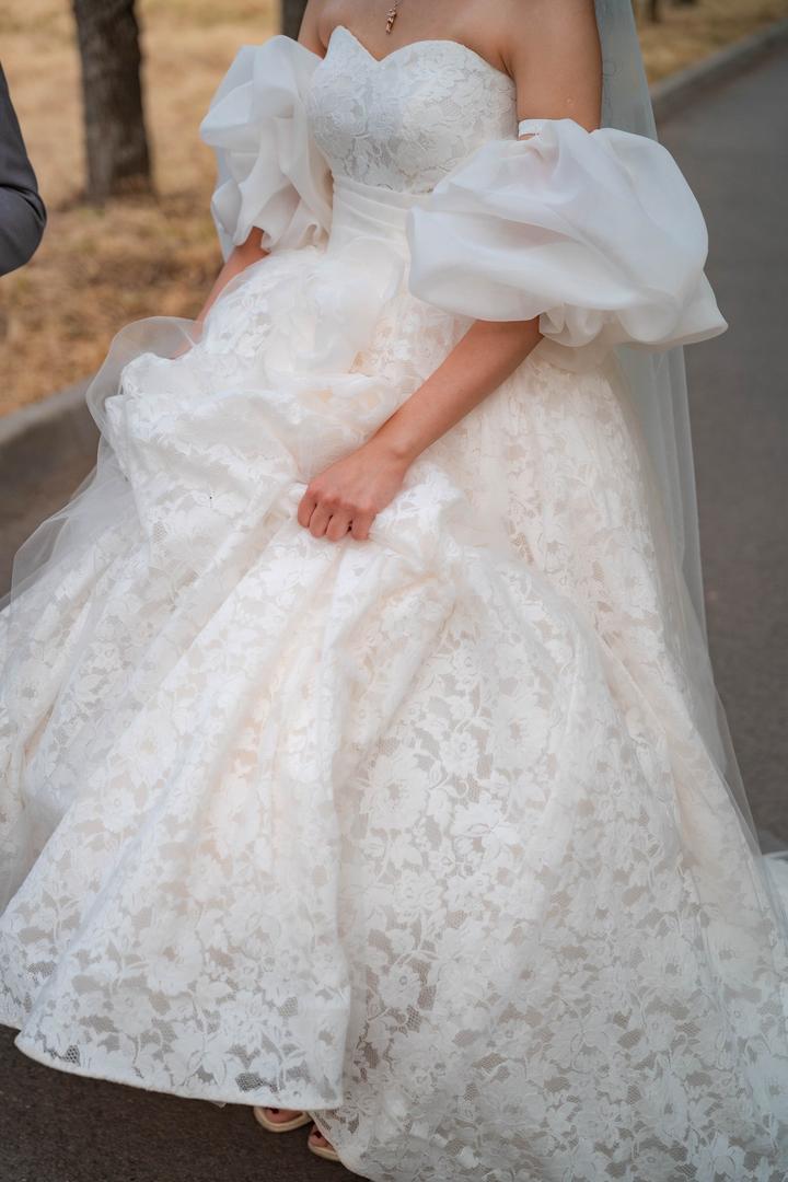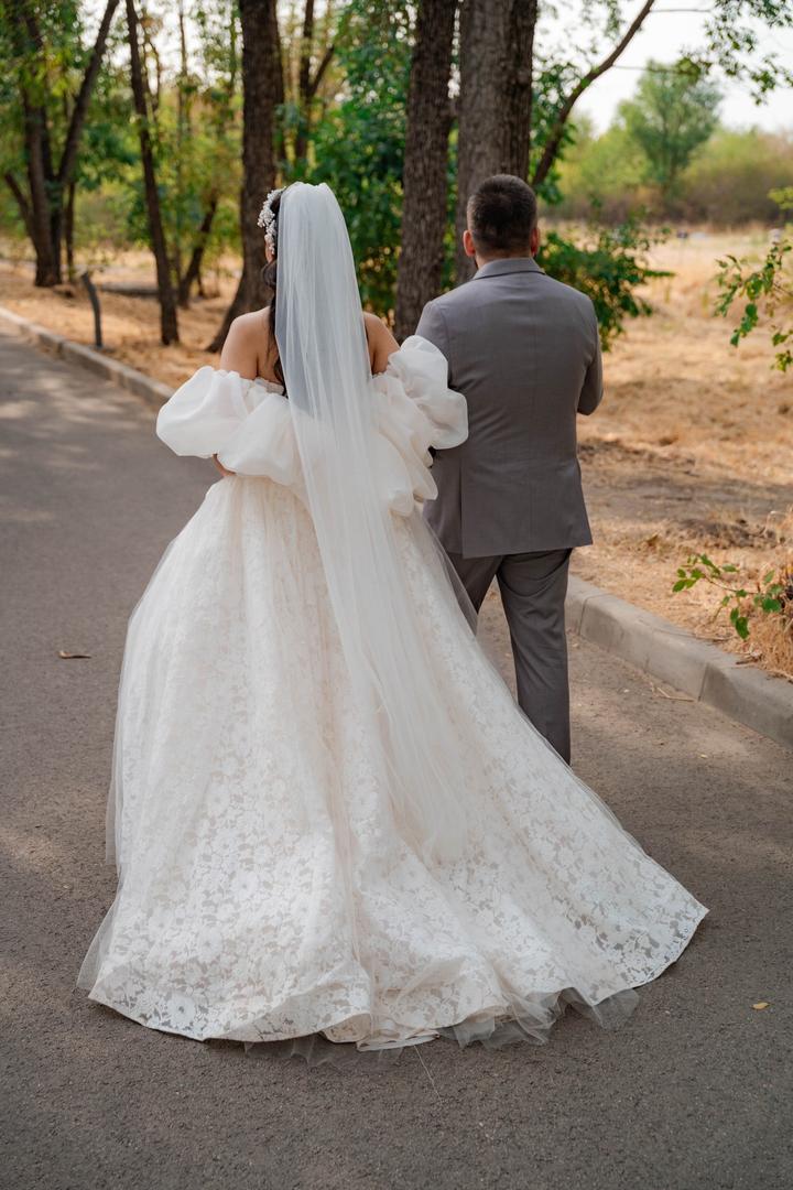 Свадебное платье на размер xs, s, m. Рост с 165/175 Очень легкое при носке, со шлейфом и накидкой на рукава. Отдам фату и украшение для прически. Артикул: 564696