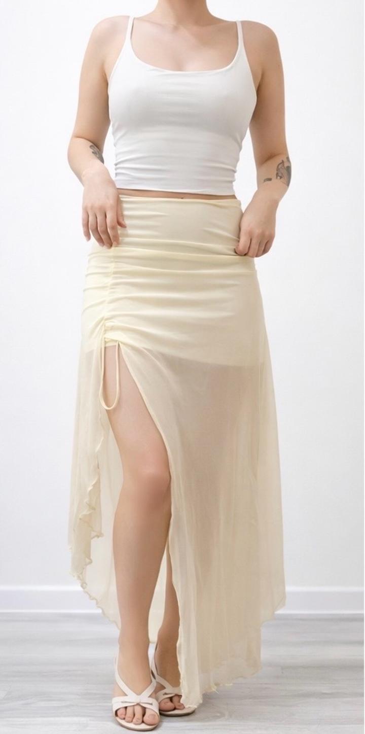Ассиметричная юбка макси салатового цвета в стиле 2000х. Внутри подклад, юбка тянется и подойдет на размеры xs-s. Мой рост 155. Выглядит очень нежно и интересно. Ни разу не носила, только примерка. Артикул: 564775