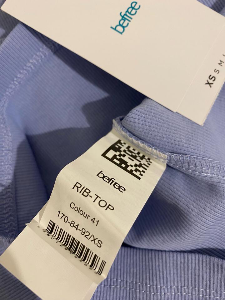 Новый топ Befree небесно-голубого оттенка в рубчик. 95% хлопок, 5% спандекс. Артикул: 564794