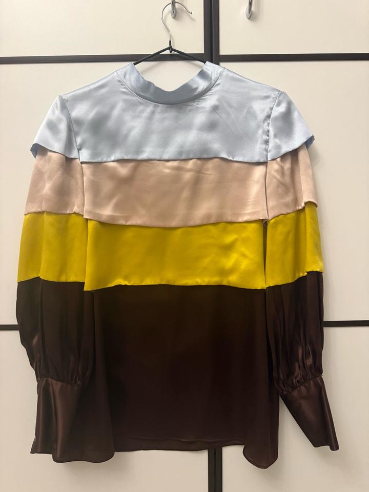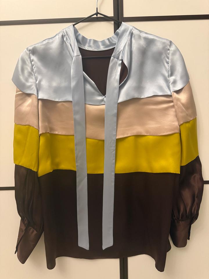 Абсолютно новая блузка из лимитированной коллекции Massimo Dutti ( без этикетки ), покупала в Дубаи Разноцветная рубашка с многослойной отделкой, выполненная из 100% шелка. Прямой крой, высокая шея, завязка сзади и длинные рукава с манжетами на пуговицах. Часть эксклюзивной коллекции Limited Edition. Размер: 36 Артикул: 564829