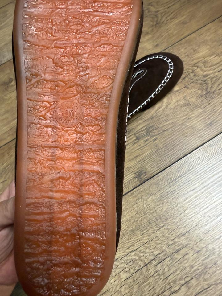 Эти коричневые замшевые лоферы (мокасины) с контрастной прострочкой напоминают стиль бренда "SHANG" Размер указан 40, но подойдет на 38 или 39 Артикул: 565057