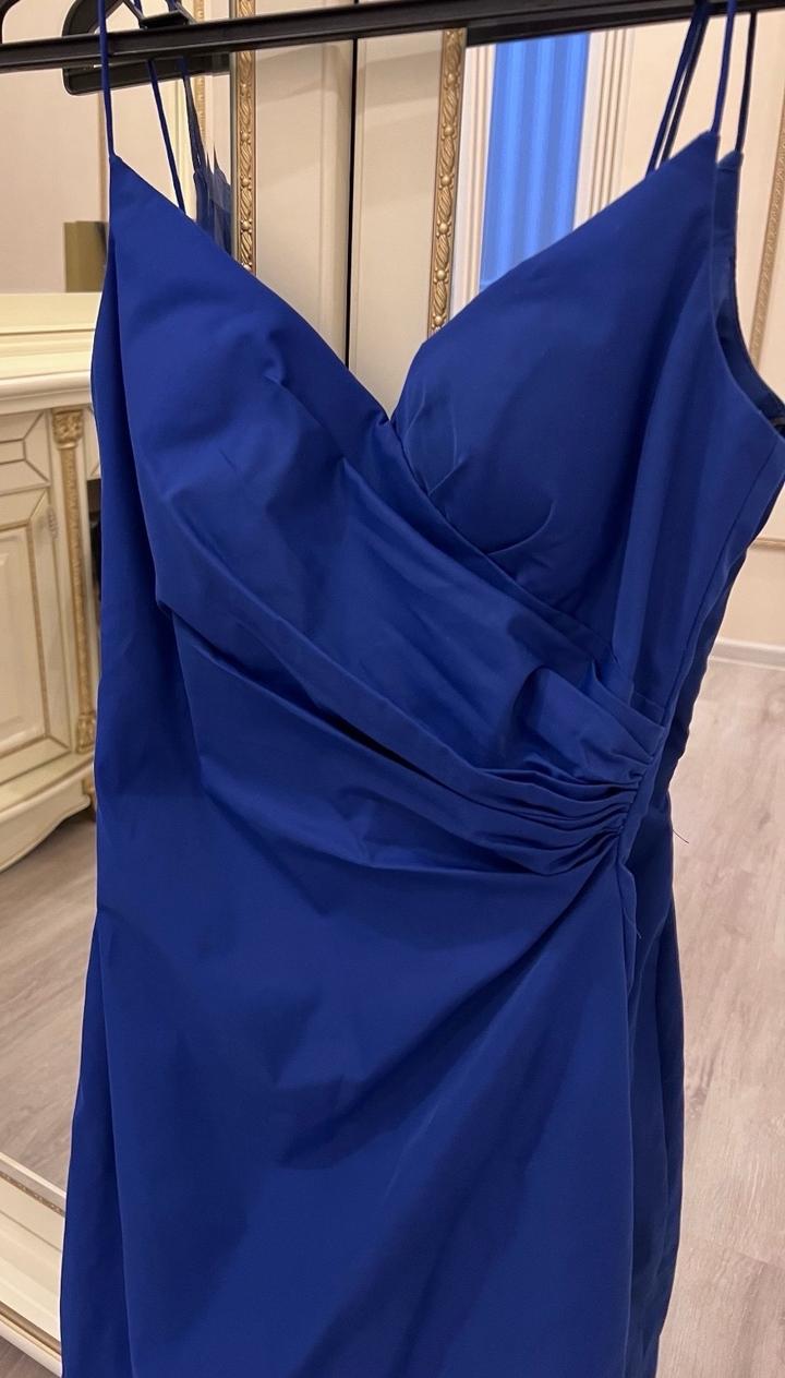 Шикарное платье фирмы T&T, кто помнит этот бренд он был в Керуене, на данный момент этот бренд закрылся. Красивое платье по фигуре, красивого синего глубокого цвета. На брительках, открыто декольте и размер платье ниже колен. В этом платье все внимание на Вас! Артикул: 565059