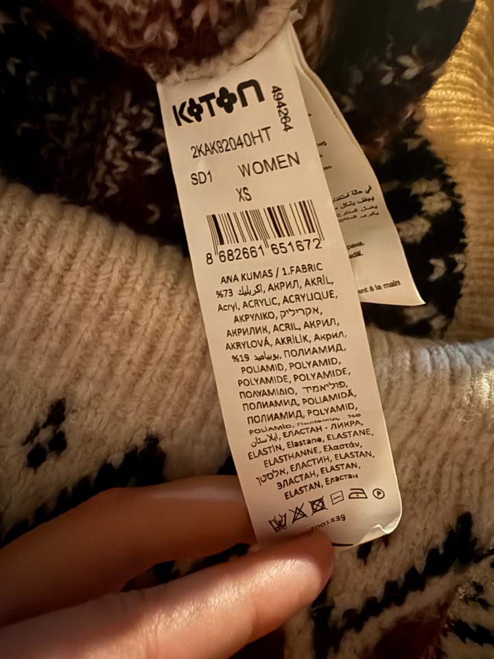 Женский жилет от koton, размера XS В идеально состоянии без дефектов, надевался два раза. Очень мягкий, приятный к телу, не колется и хорошо держит форму после стирки. Состав основной ткани: 73% Акрил, 19% Полиамид, 8% Эластан. Артикул: 565068
