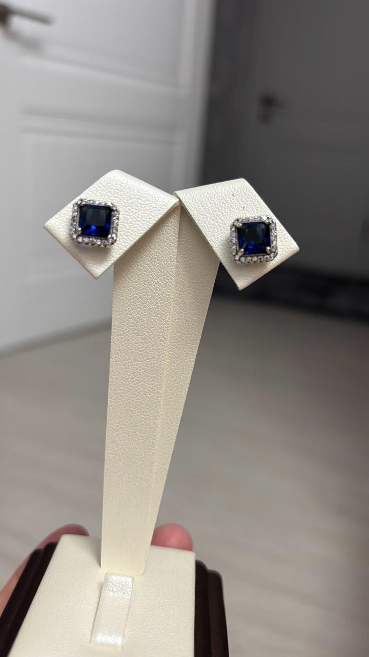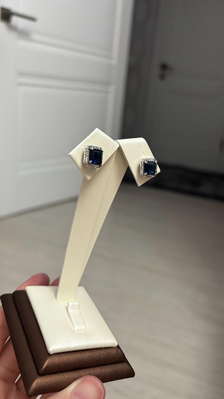 Ақ алтынның аппаратымен өңделген 925 сынамасы бар радированый күміс қараймайды ставкасы сапфир. Сапасы өте жоғары Артикул: 565149