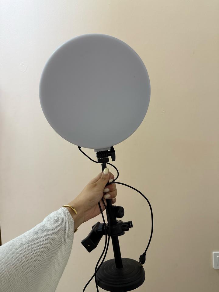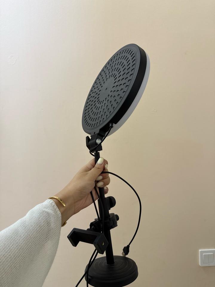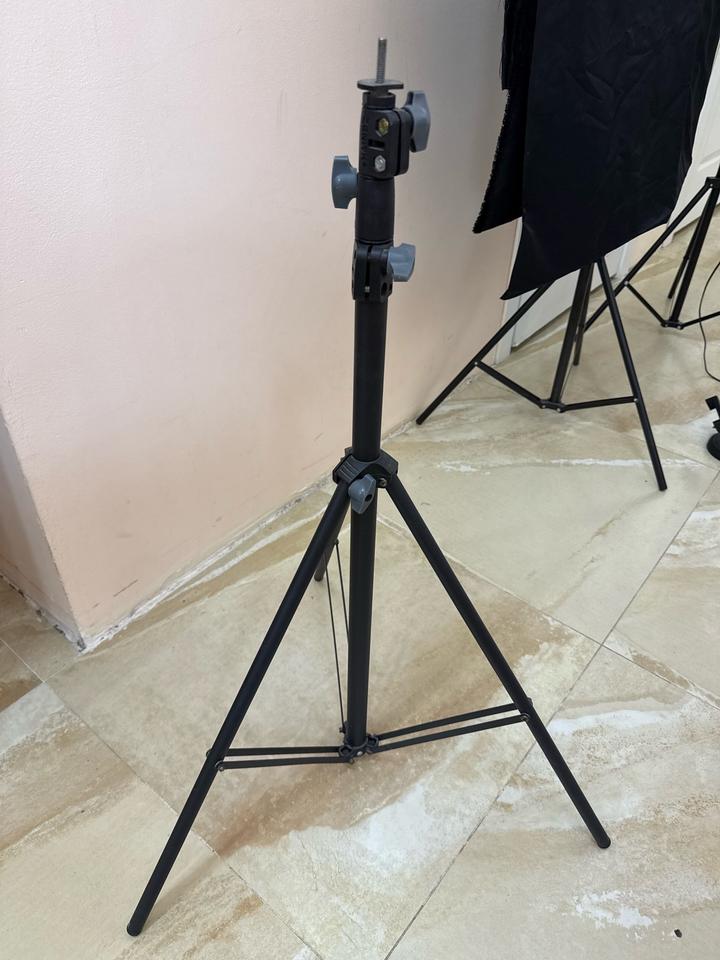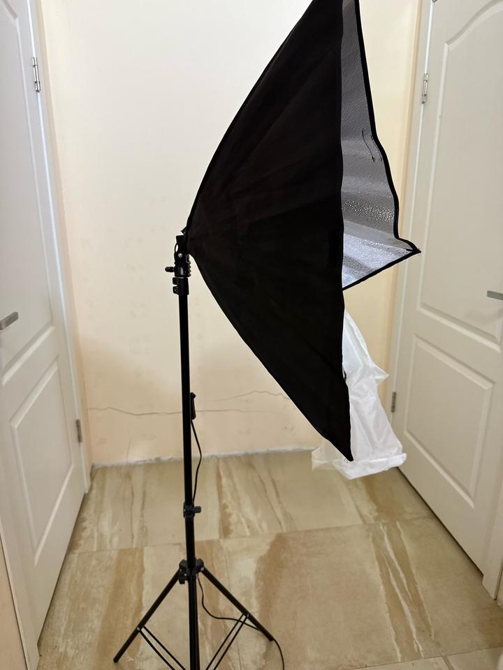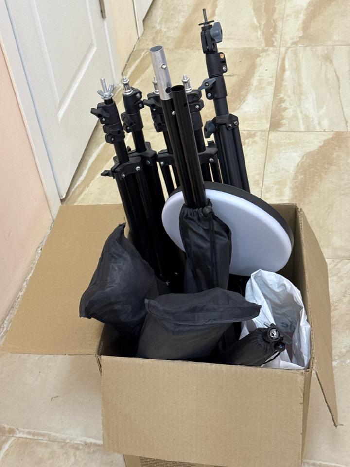 В комплекте 2 софт бокса (1 сломан, можно убрать бокс), 1 вертикальный rgb лампа, стойка для фона и ткань черная плотная (большого размера), настольная круглая лампа со штативом для телефона, один штатив хорошего качества, 1 круглый светоотражатель, петличка и доп.держатели. Все в рабочем состоянии Артикул: 565438