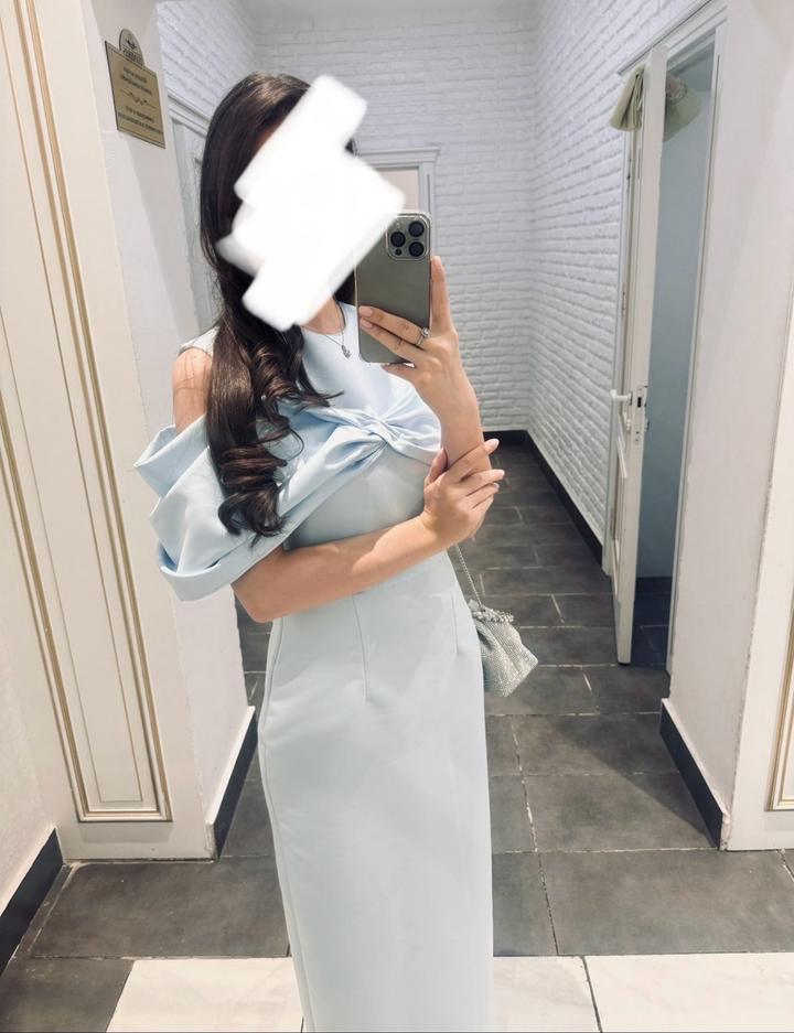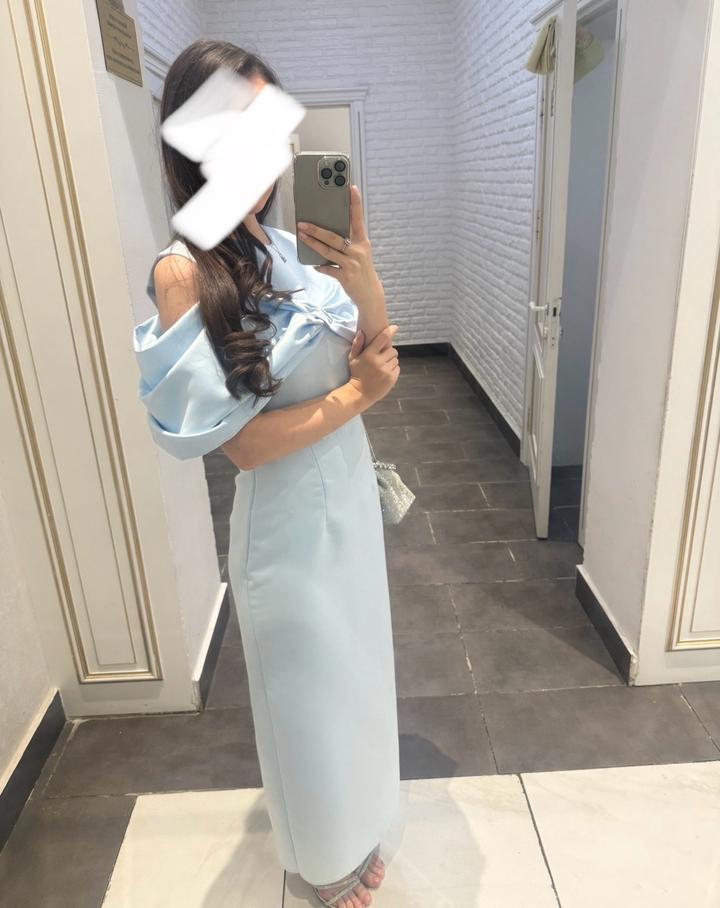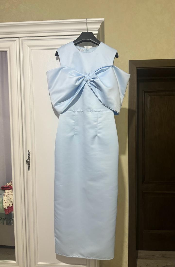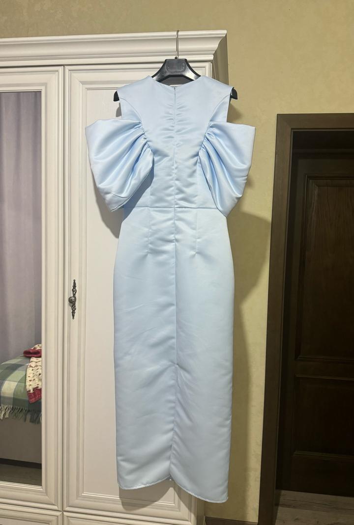 Голубое платье без бренда. 42 рр. (S) Надевалось два раза на несколько часов. Материал полиэстер, но не колется и ткань легкая, склонная к образованию лёгких складок (См. фото 5/6). Мой рост 165см. Артикул: 565473