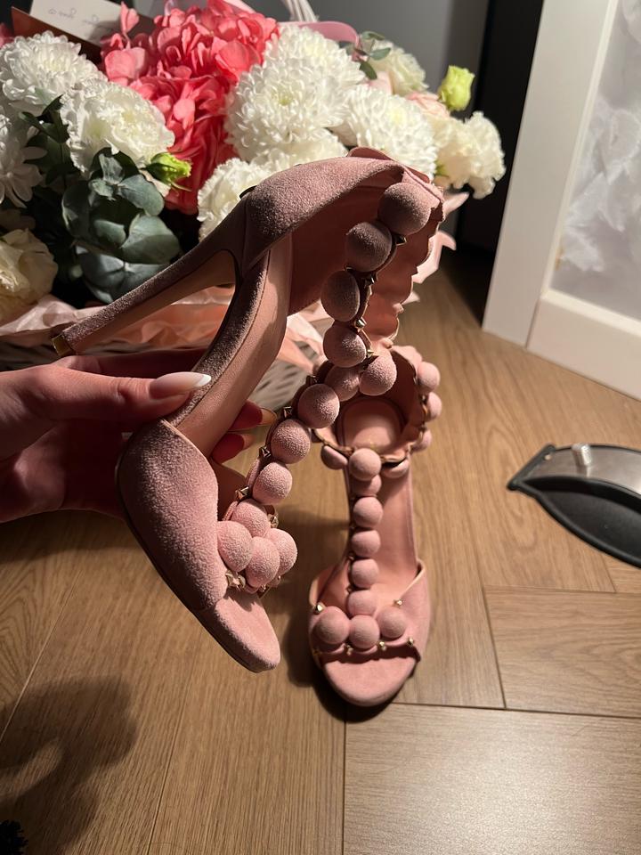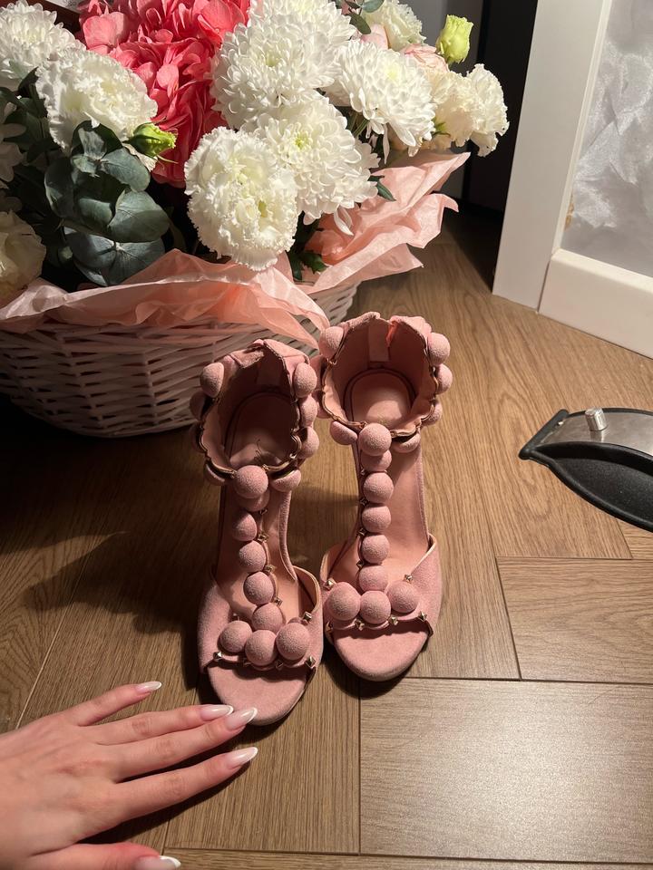 Бархатные розовые босоножки36