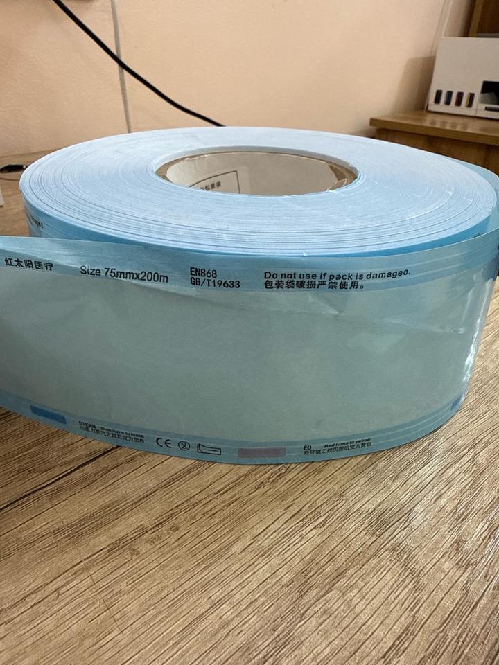 Рулон Пакет для стерилизации инструментов размером 75х200. Подойдет для медицины и для расчесок, кистей. Артикул: 565500