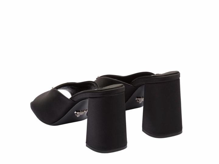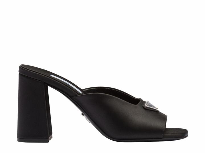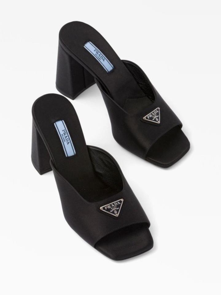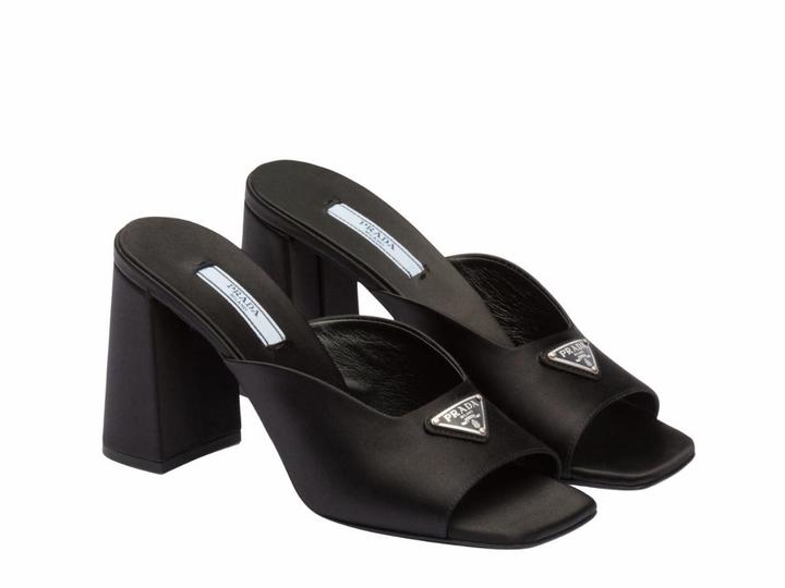 Элегантная и смелая модель от Prada, ставшая настоящим хитом. Мюли выполнены из премиального черного сатина (атласа), который придает обуви роскошное сияние и глубину цвета. Главный акцент — узнаваемый эмалированный треугольный логотип бренда. Натуральный шелк-сатин (атлас), внутри — мягкая кожа.Открытая пятка (мюли) — максимально удобно надевать, отсутствие лишних застежек. Артикул: 565509