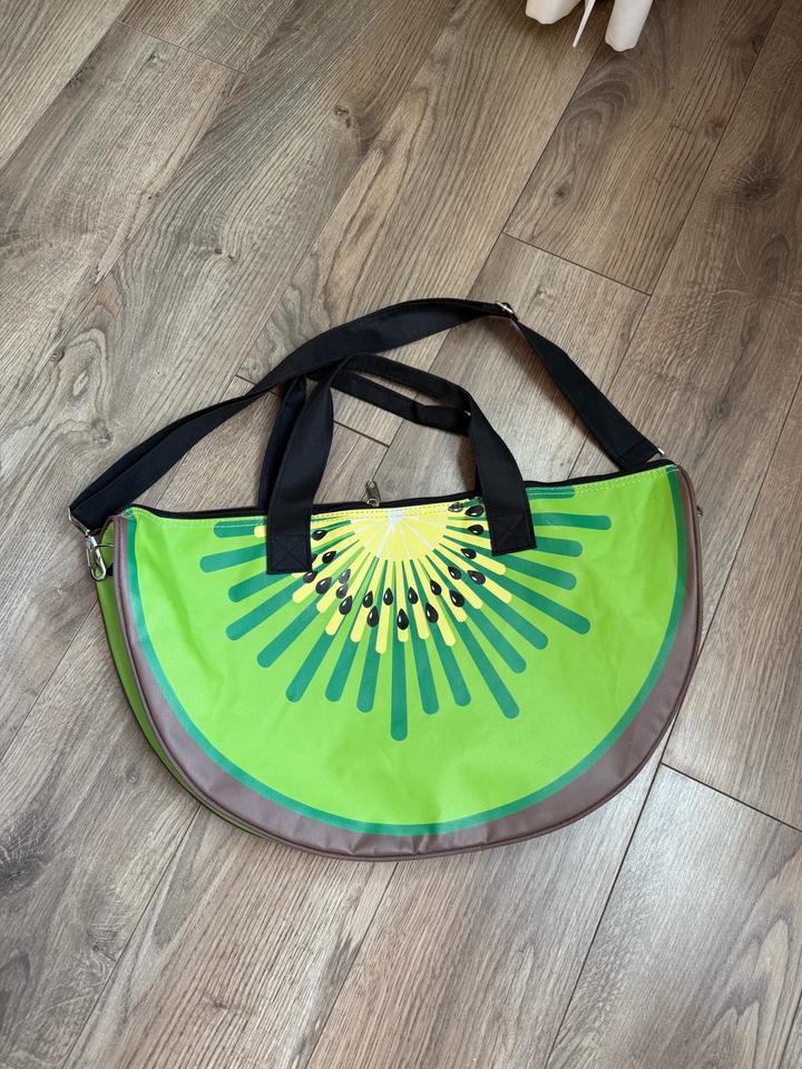 Пляжная сумка с ярким принтом «сочный киви» 🥝 Стильная и практичная сумка, которая сразу привлекает внимание своим свежим летним дизайном. Изготовлена из водоотталкивающего материала — идеально подходит для пляжа, бассейна или отдыха. Лёгкая, но при этом вместительная и удобная в использовании. Оснащена двумя прочными ручками и дополнительным плечевым ремешком для комфортной носки. Размеры: — длина: 50 см — высота: 30 см Артикул: 565530