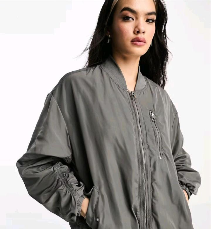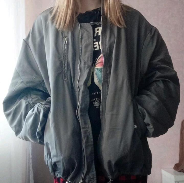 Серый бомбер из полиэстра. Был куплен в Беершке в 2023 году. Состояние хорошее Артикул: 565776