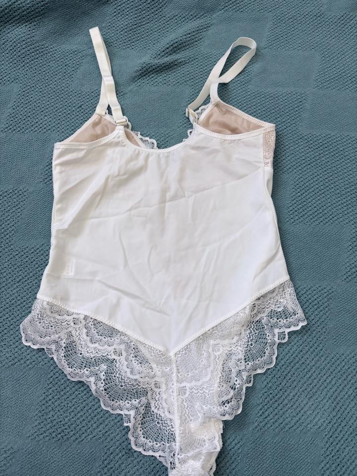 Белый кружевной боди-топ. Хорошо под пиджак. Лямки регулируются, размер идеально на 42-44. Артикул: 565820