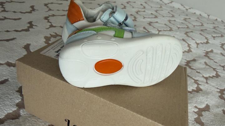 Ортопедическая стелька, натуральная кожа. Идеально для первых шагов. Изначально брали со скидкой из за выцветшего задника. На девали на выход всего один на и на коляске ( еще не ходил в 1,2 года) Артикул: 565856