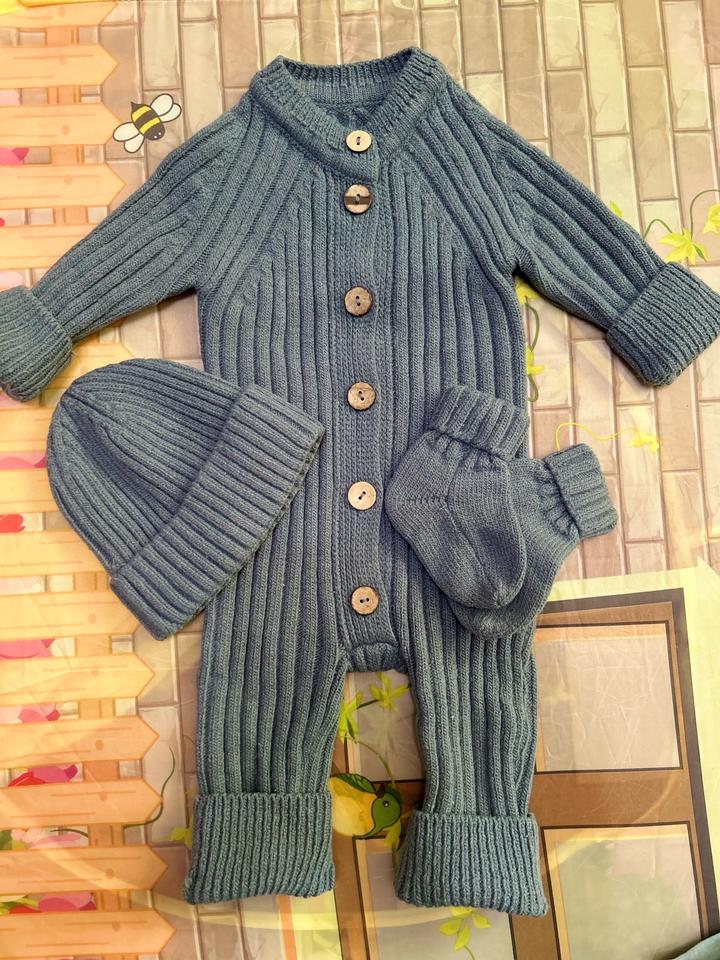 Вязаный комбинезон Составь шерсть мериноса На тело не колется, очень мягкий и теплый. Размер от рождения до 9-10 месяцев, зависит от веса малыша. Это примерно 56-6+7### ### ## ##дворачиваются. Производство Россия Артикул: 565908
