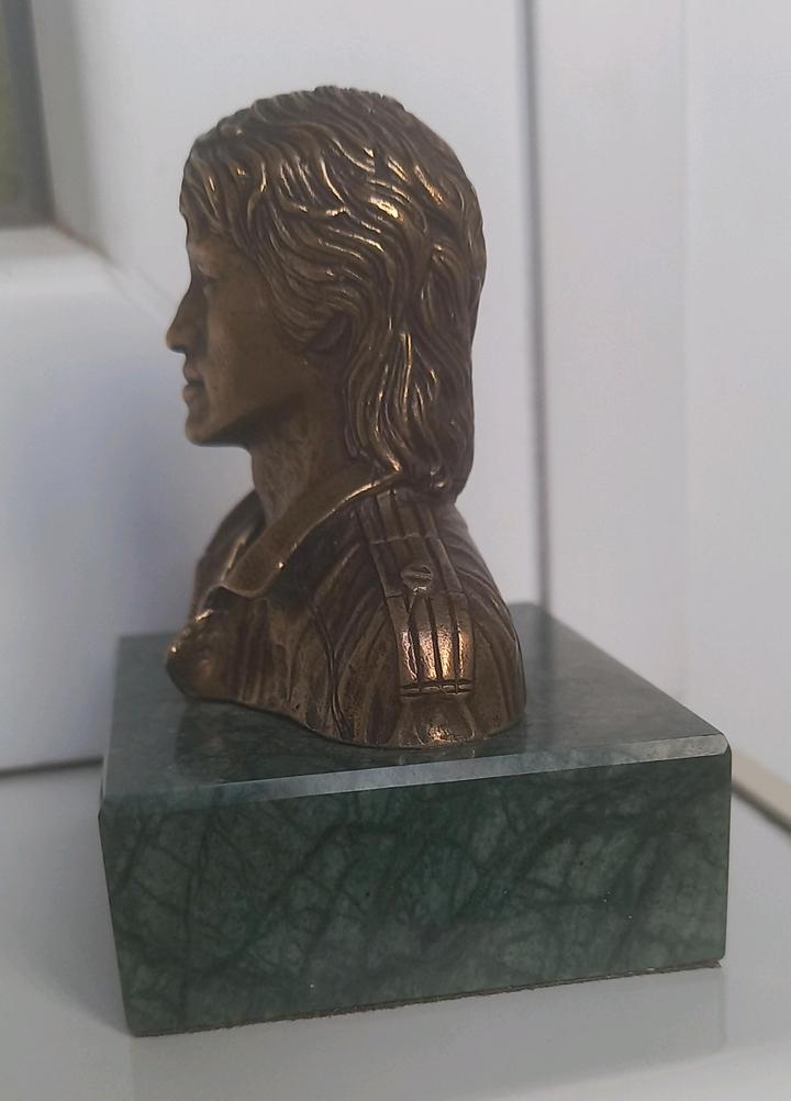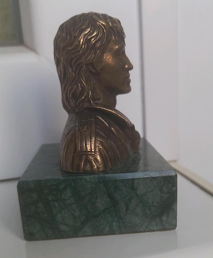 Коллекционная статуэтка легендарного музыканта Виктора Цоя Лидер группы Кино Материал: бронза Основание: натуральный мрамор Тип: предмет коллекционирования, сувенир Высокое качество исполнения — отличная детализация лица и одежды Тяжёлая, устойчивая, выглядит солидно и дорого Отлично подойдёт: для личной коллекции в подарок поклоннику русского рока для украшения интерьера или рабочего стола Состояние: отличное, без сколов и дефектов Артикул: 566043