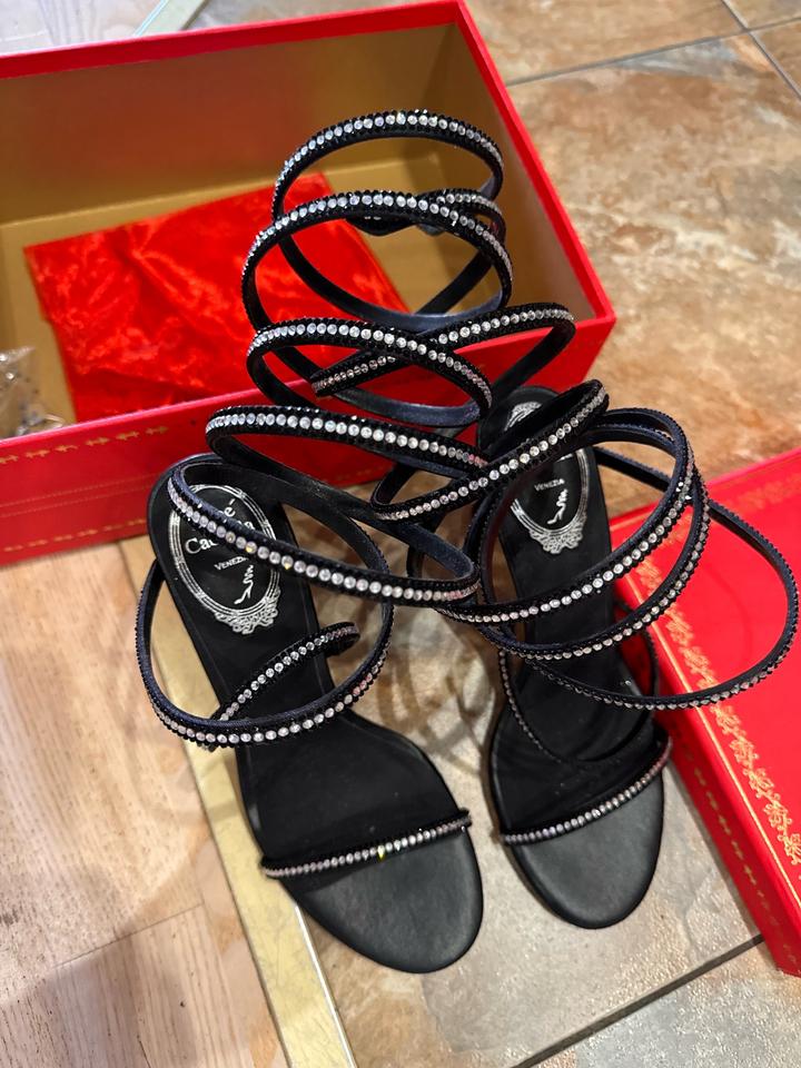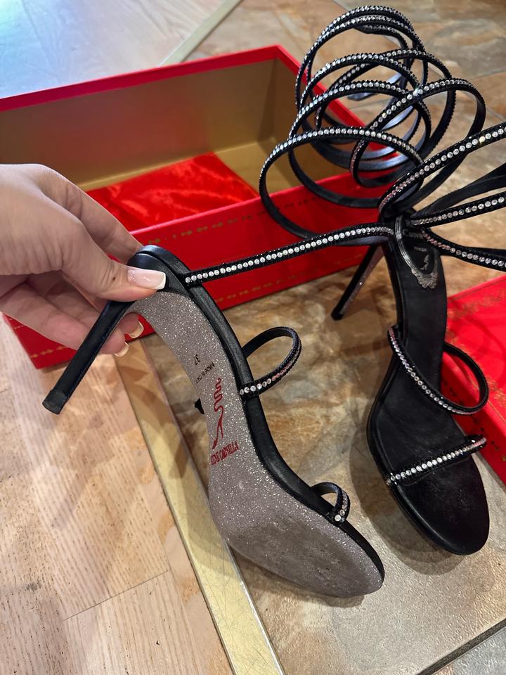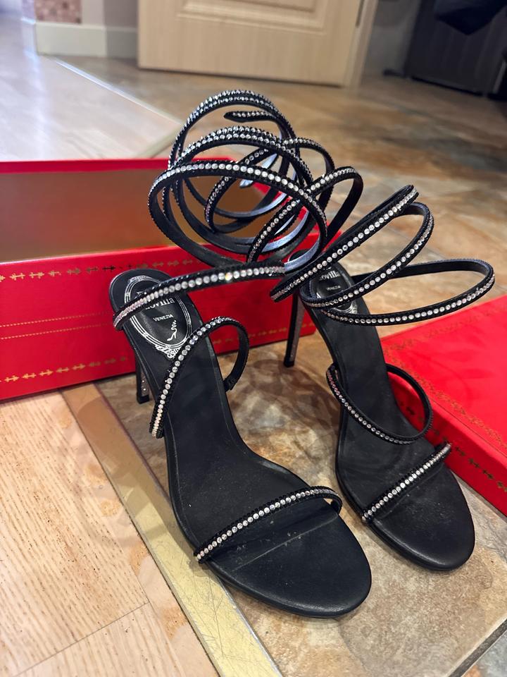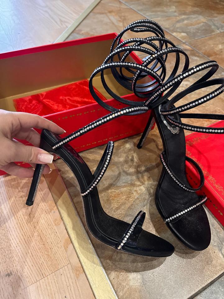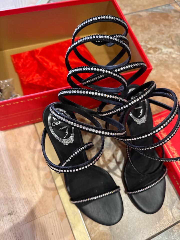 Босоножки на каблуке 9 см Со стразами черные 36 размер Артикул: 566070