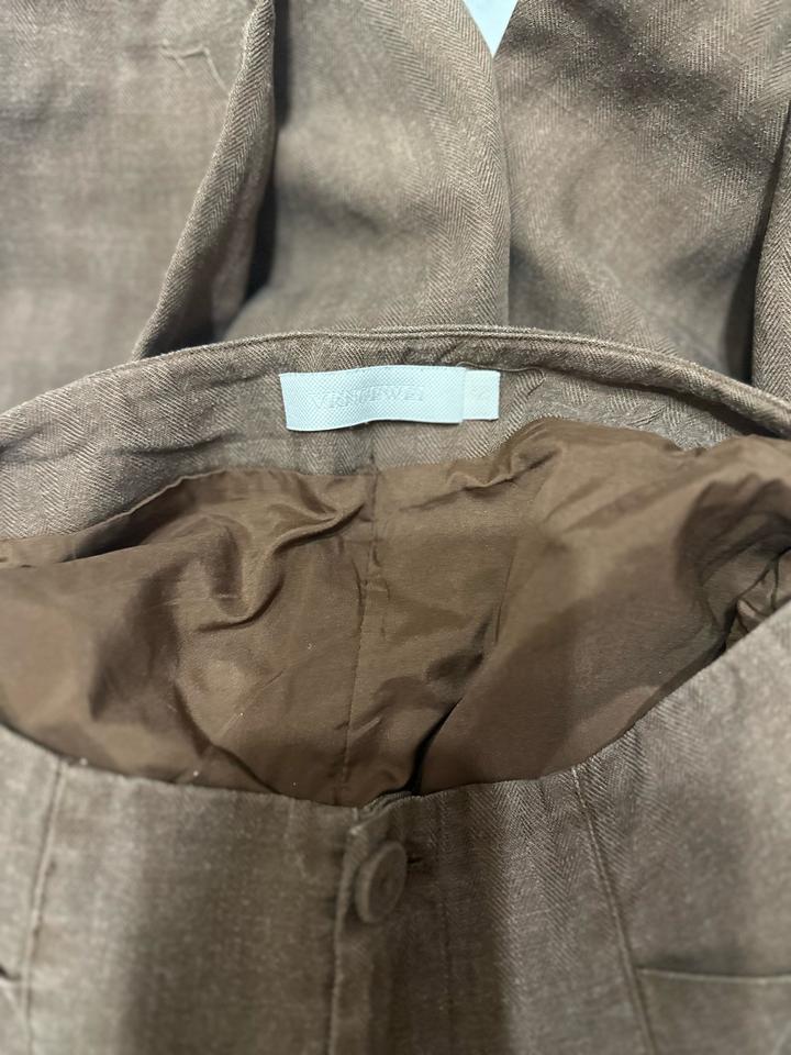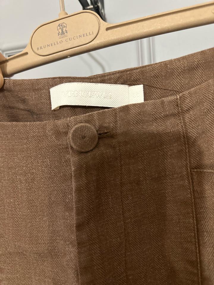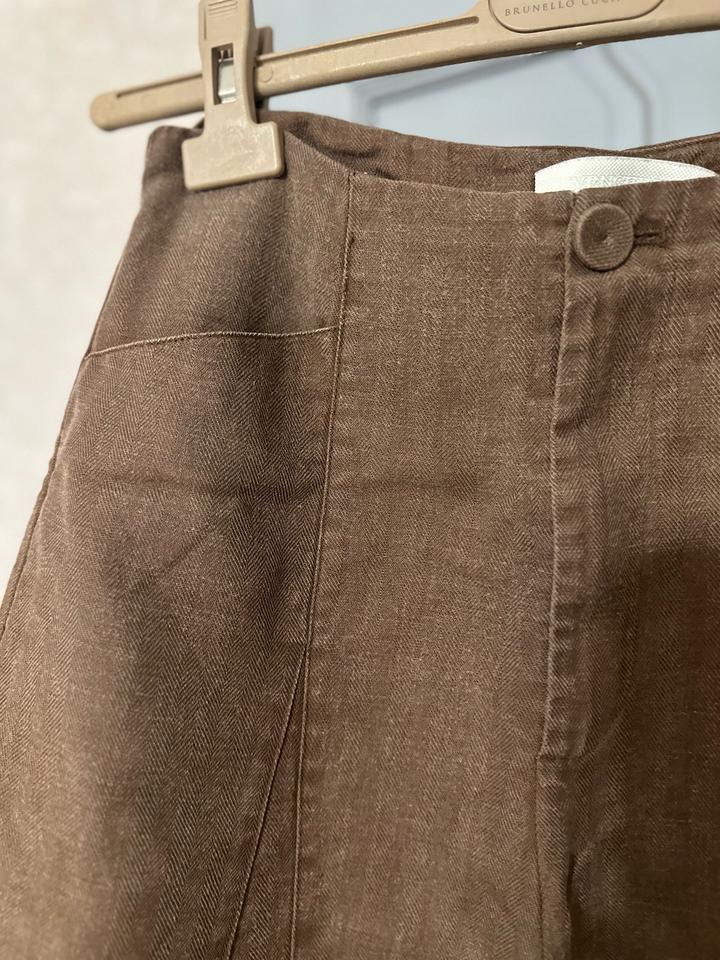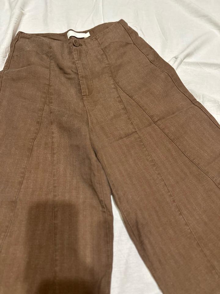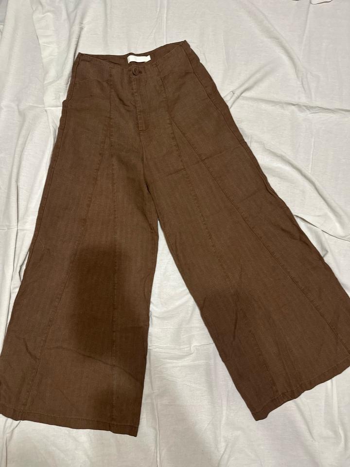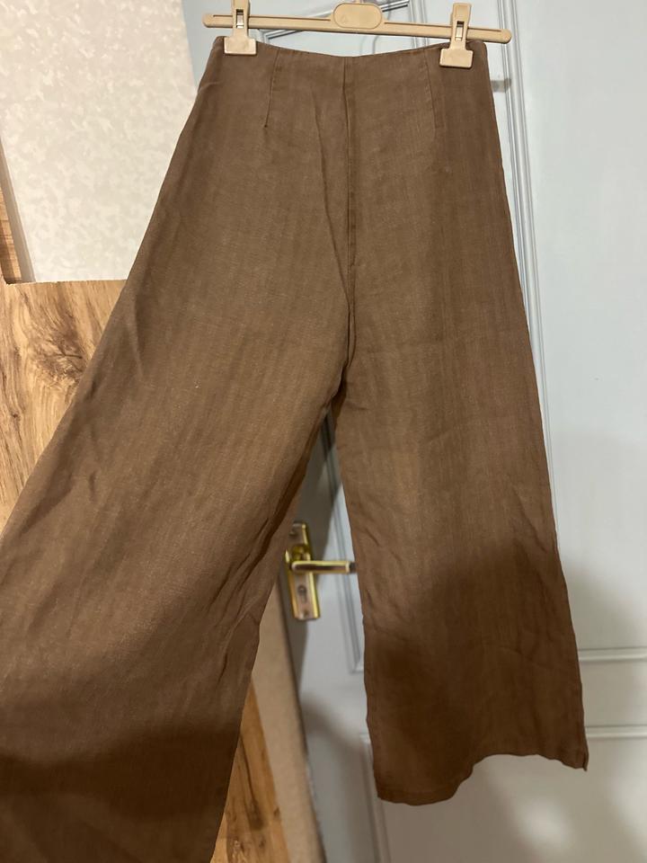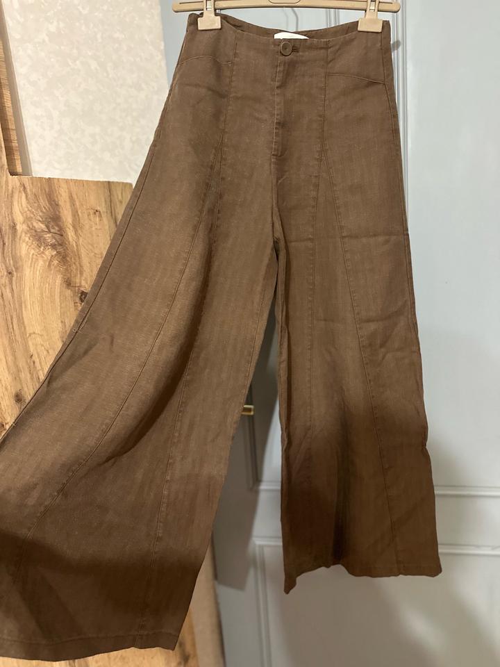 Брюки в благородном коричневом оттенке 🤎 Широкий крой с высокой посадкой красиво вытягивает силуэт и добавляет образу элегантности. Лёгкая, приятная к телу ткань с добавлением льна — идеальны на тёплый сезон. Лаконичный дизайн легко сочетается с базовым гардеробом. Длина брюк - 1 метр Артикул: 566107