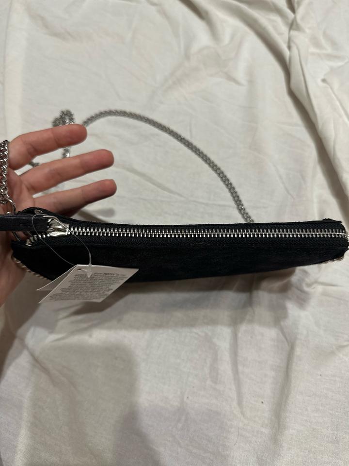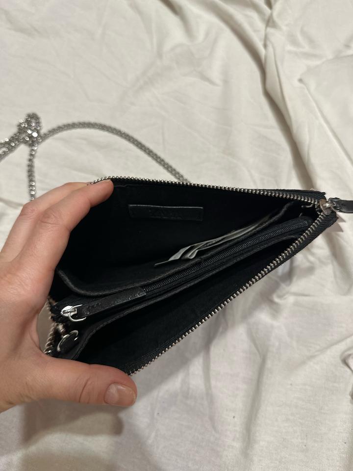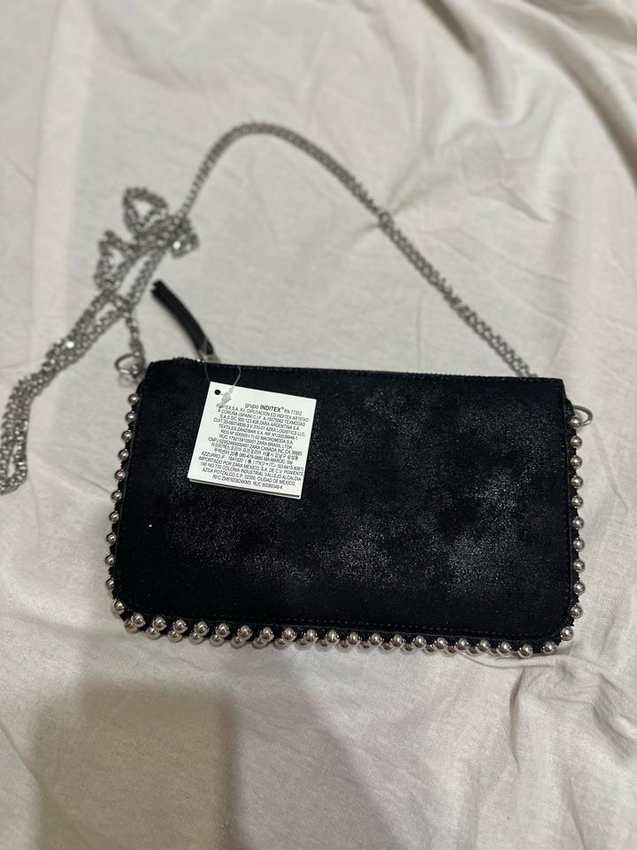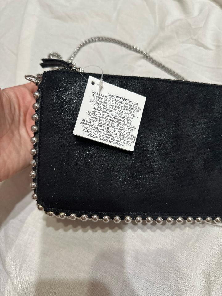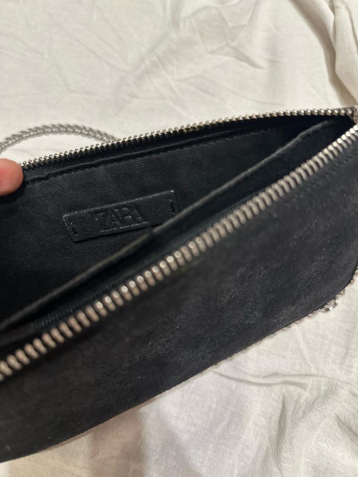 Сумка Zara в стиле драма 🖤✨ Минималистичная форма с характерным акцентом — металлическая цепочка и декоративная окантовка с бусинами по краю создают тот самый вайб. Лёгкий сатиновый блеск добавляет вечернего настроения, а компактный формат идеально подходит для выходов. Можно носить в руке как клатч или на плече — за счёт цепочки. Отлично дополняет образы с платьями, костюмами или даже базовым денимом, добавляя дерзкий глам. Артикул: 566183