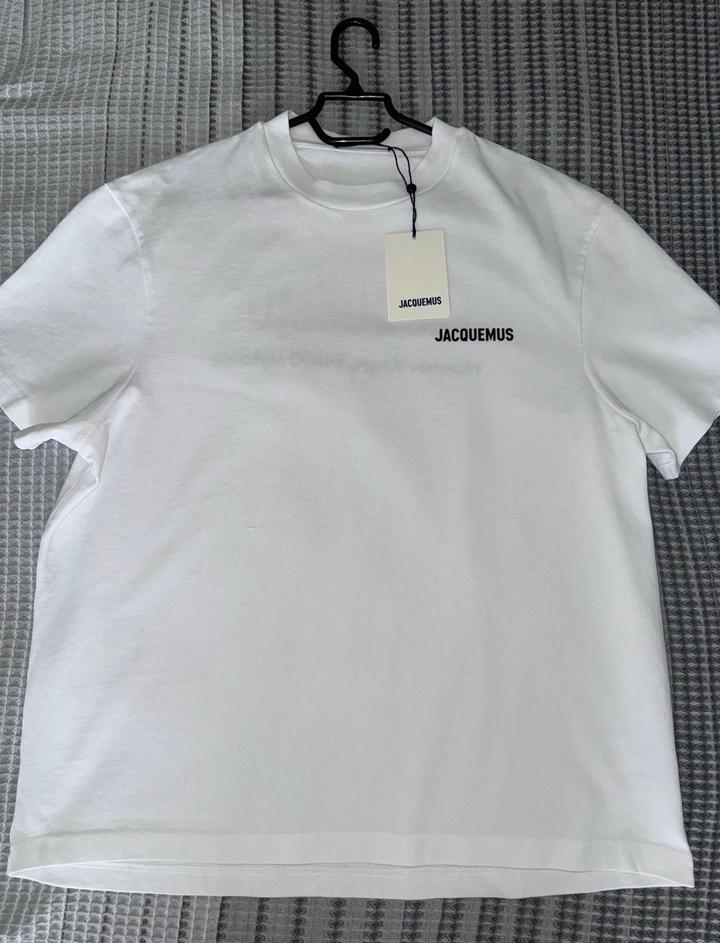 Футболка Jacquemus из последней коллекции. Заказывала онлайн с официального сайта, онлайн чек есть. К сожалению размер не подошел, абсолютно новая. Можно и на мужчину и на женщину. Размер М, оверсайз. Артикул: 566201