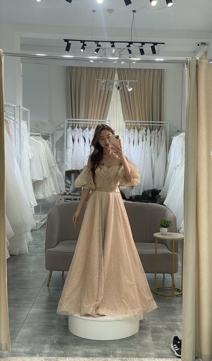 Платье, в котором ты становишься главным событием вечера Нежное вечернее платье в оттенке шампань с деликатным мерцанием. Идеально садится по фигуре, подчёркивая талию и создавая лёгкий, воздушный силуэт. Объёмные рукава добавляют романтики, а струящаяся юбка делает каждый шаг по-настоящему эффектным. Идеально для: выпускного, свадьбы, фотосессии или любого вечера, где хочется выглядеть роскошно без лишних усилий. Дизайнерское платье в эксклюзивном варианте Артикул: 566316