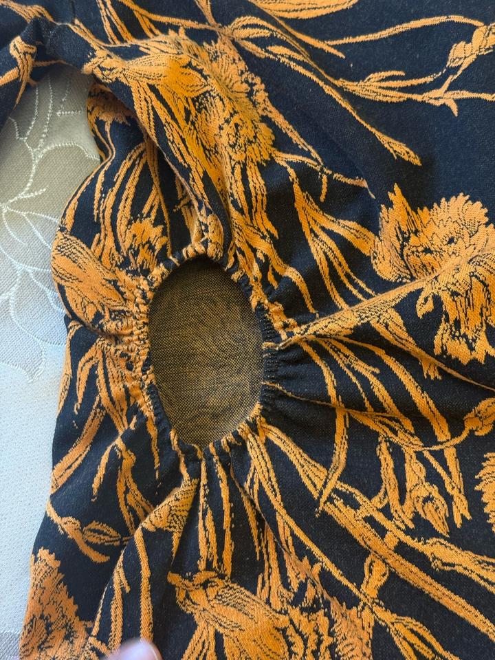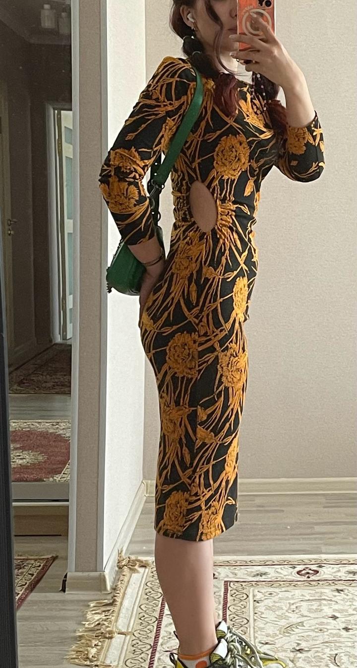 Платье трикотажное с двумя разрезами по бокам круглой формы на резинке в районе талии Дефектов нет, запахов нет, было в носке аккуратно 2 раза, после просто хранилось в гардеробе Длинные рукава, у меня рост 165, длина - ниже колен Классно подчеркивает фигуру, плотность - средняя, не укорачивалась, ткань мягкая, прияная к телу Артикул: 566445