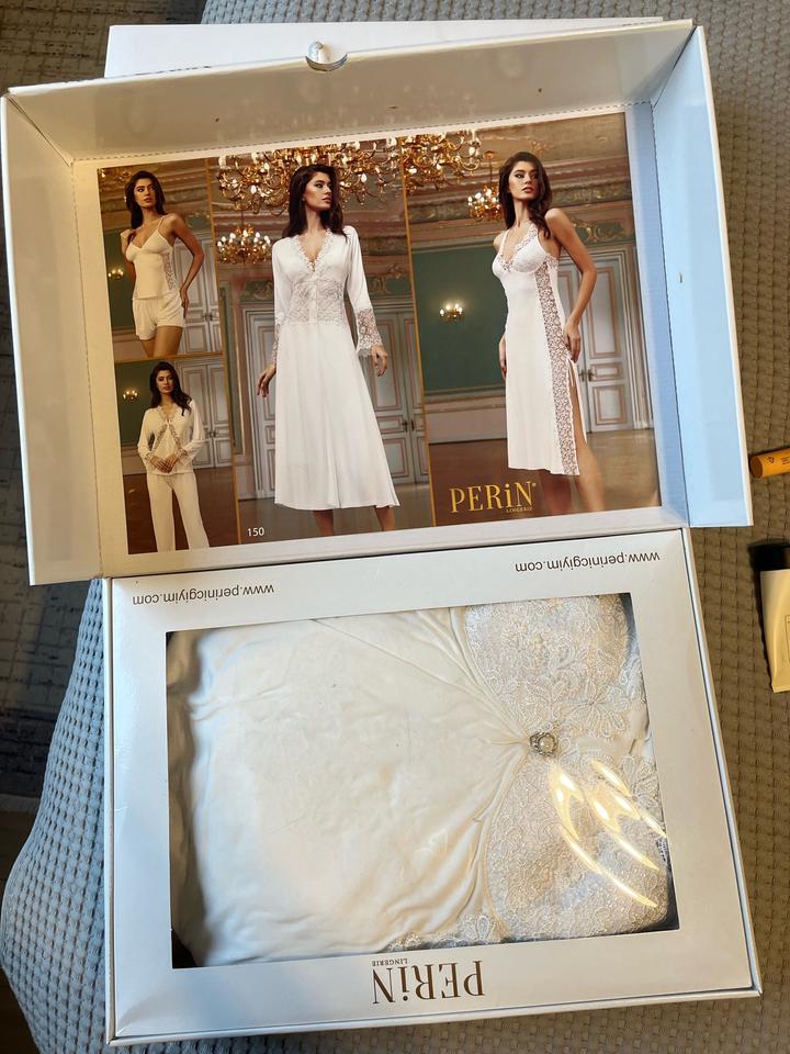 Новый комплект женского белья в подарочной упаковке, производство Турция Состав комплекта: Брюки, шорты, ночная сорочка, топ, халат, рубашка Материал: хлопок, размер S Абсолютно новый комплект, подойдет для невесты, молодой девушки или просто на подарок Артикул: 566454