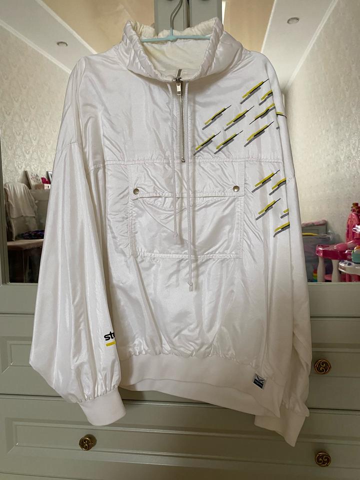 Бомбер смотрится стильно. Имеется дефект-желтизна на внутренней стороне(фото прилагается). Артикул: 566591