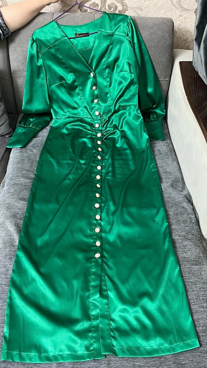 Зеленое платье атласноеM