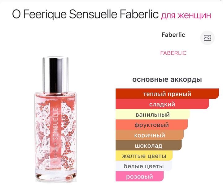 Парфюм O Feerique Sensuelle Faberlic. Аромат, который звучит дорого и притягательно ✨ Тёплый, сладкий аромат с нотами шоколада и ванили 🍫 Мягкий, женственный и очень притягательный. Оставляет вкусный, слегка пряный шлейф😌 Артикул: 566731