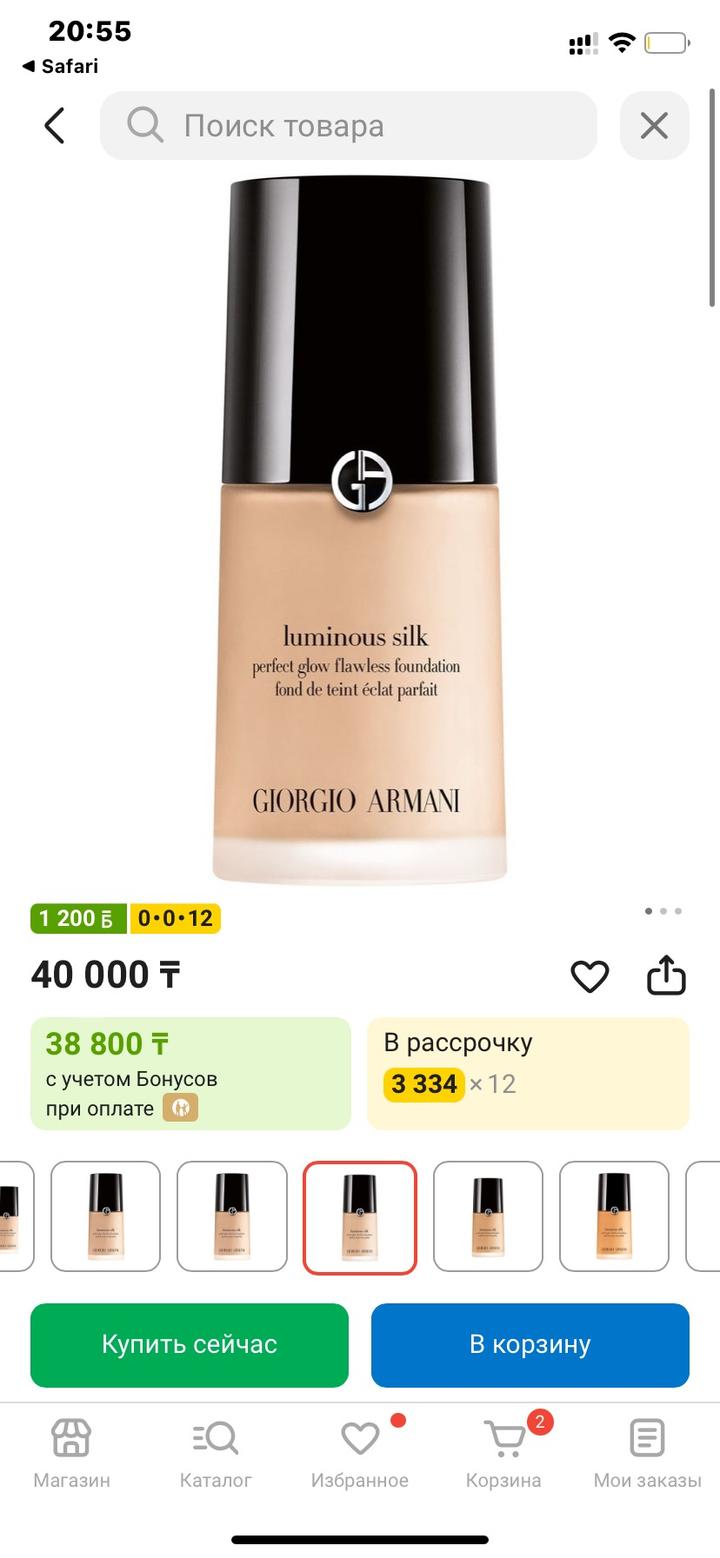 Armani тональный кремі з/яалынған маған оттеногы келмеді! Окончательно 10 мың ! 2 рет пайдаланылды! Артикул: 566912