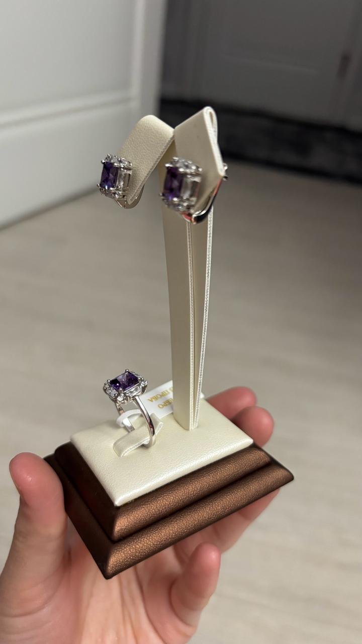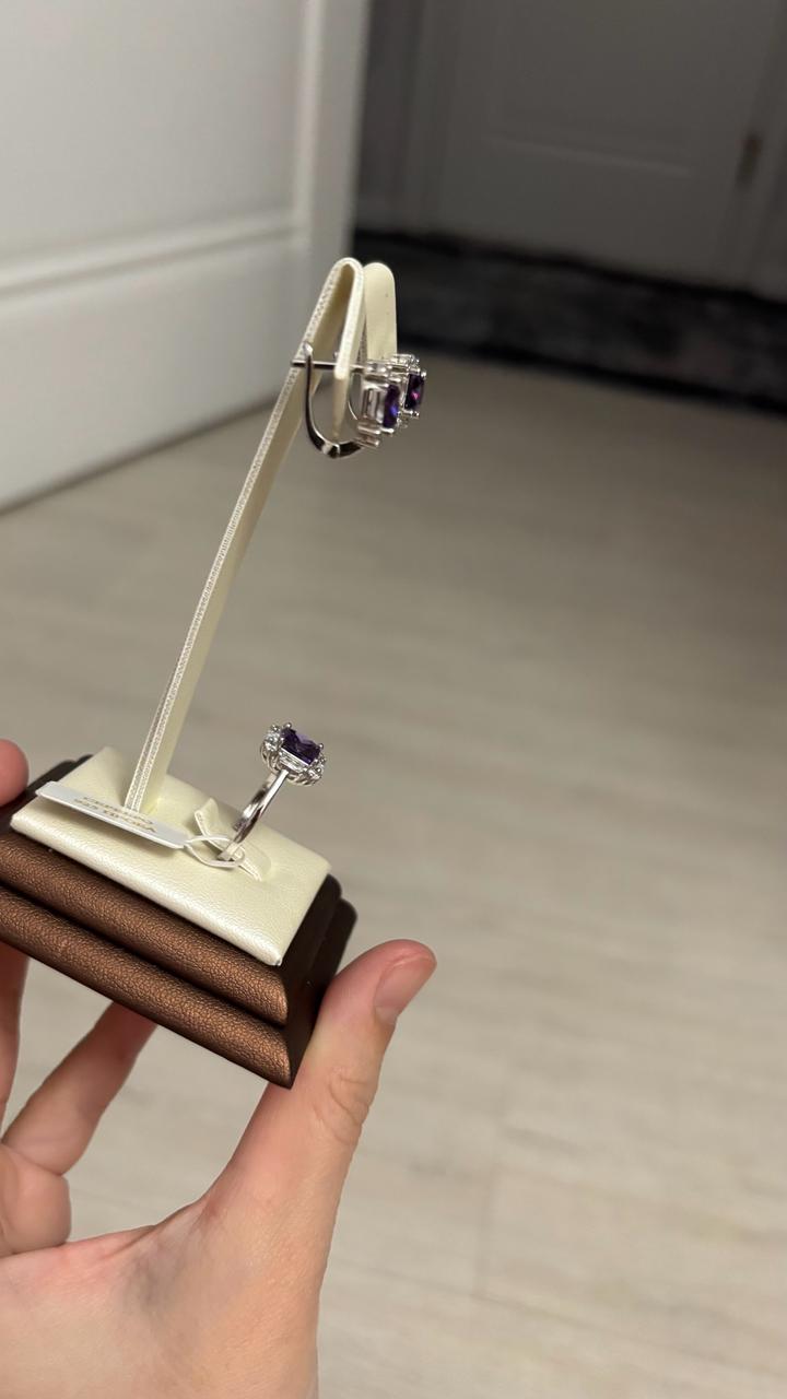 Pandora брендінің наборы сапасы өте жоғары жасалған қараймайтын тасы аметист кез келген киіммен үйлесетін ереке стильінде жасалған көзге сразу түсетін таза 925 сынамадан жасалған күміс әшекей бұйымы Артикул: 567044