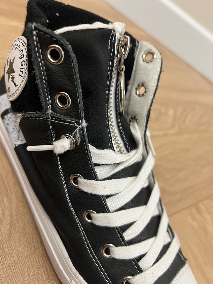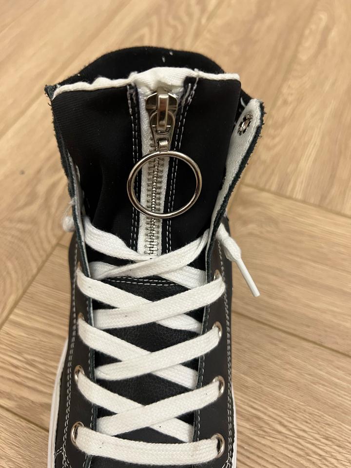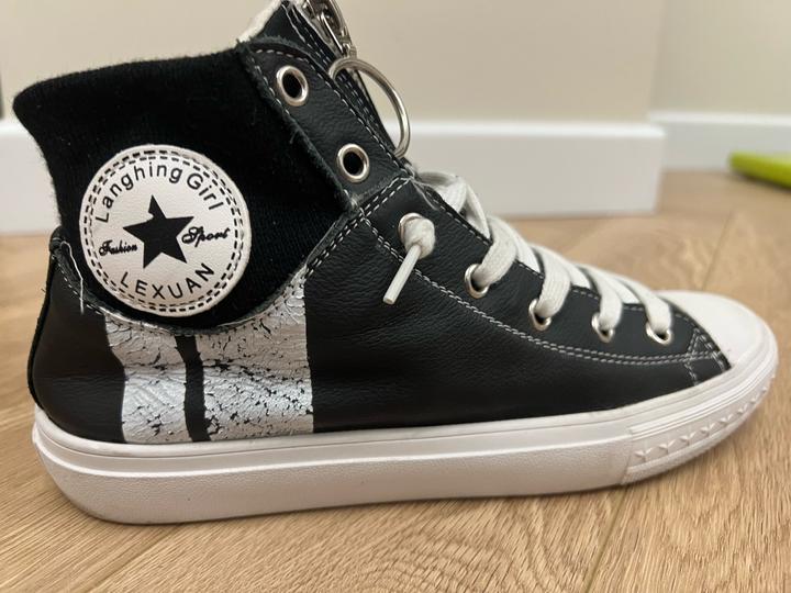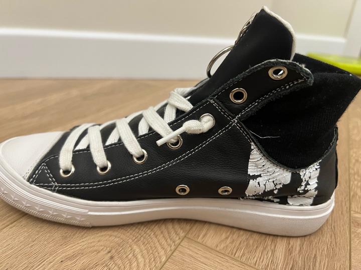 Кеды под converse. Со стороны пятки по бокам стирается краска белая (полоски на фото видно), ее можно полностью свести и останется черный фон. Артикул: 567072