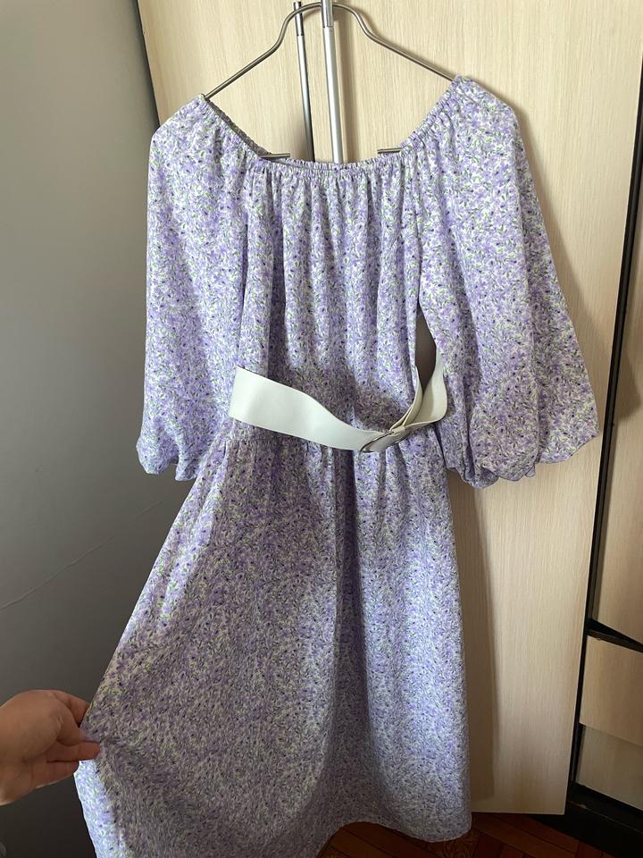 Нежное сиреневое платье, длина ниже колен, верх как крестьянка, можно опустить или поднять, рукава четверть фонарик, отлично прочеркивает талию за счет ремня, сделает вашу фигуру как песочные часы! Артикул: 567136