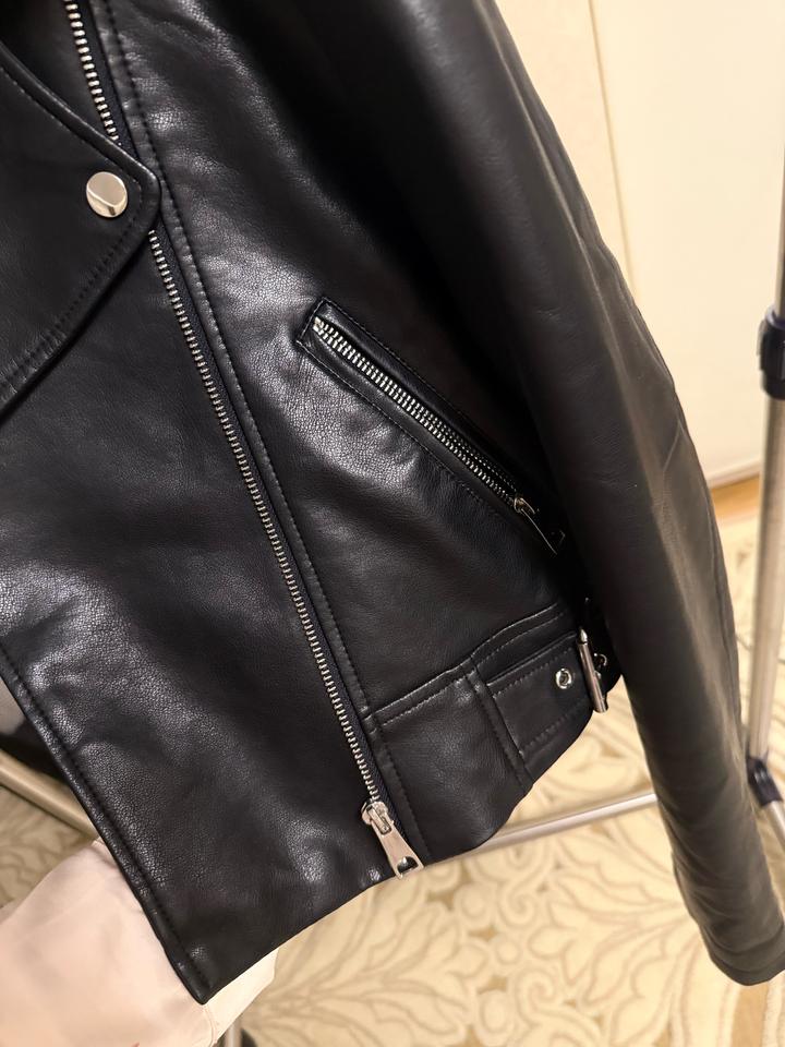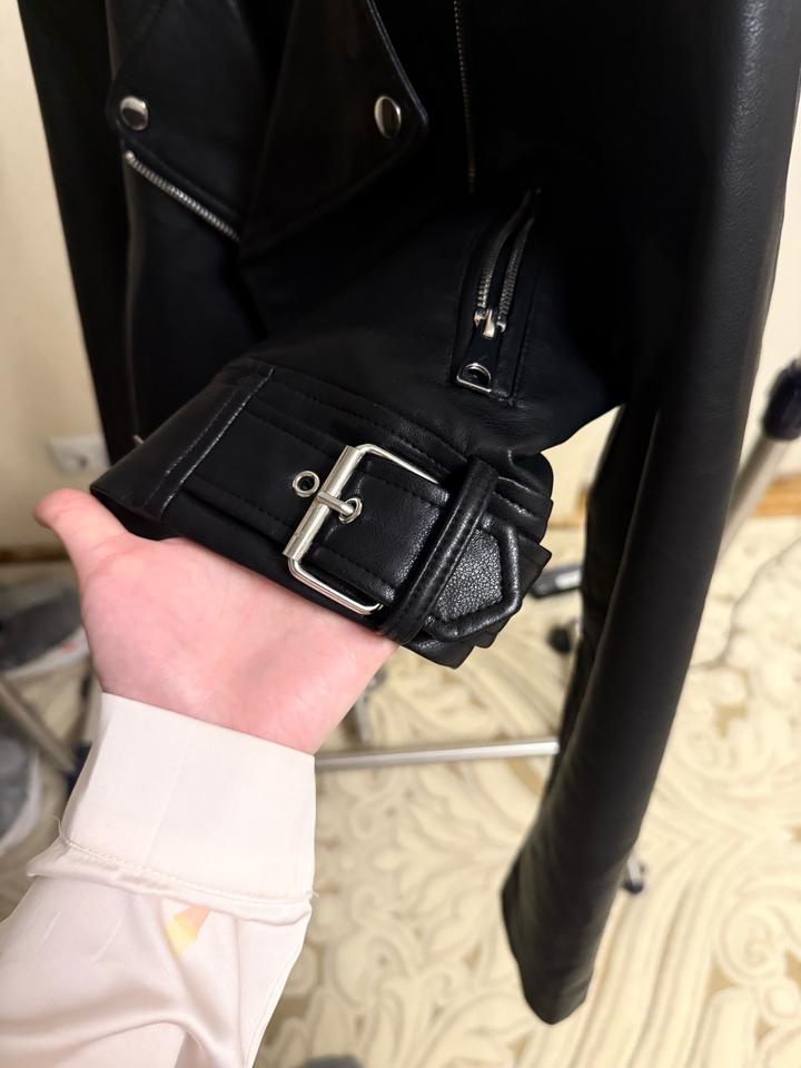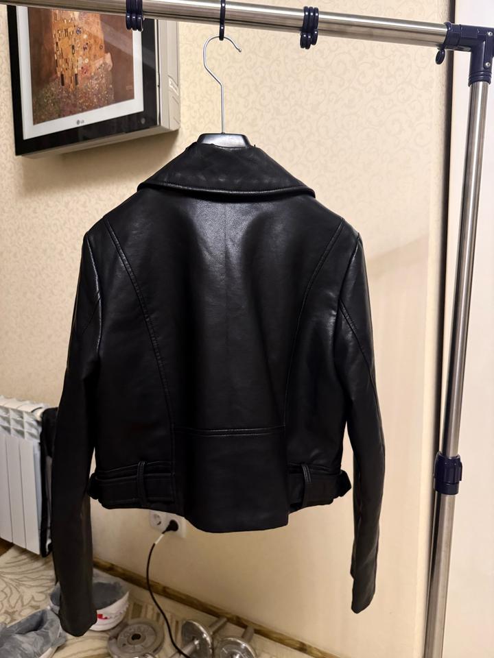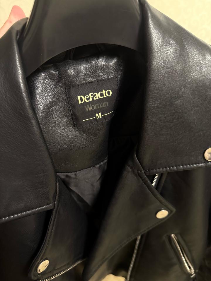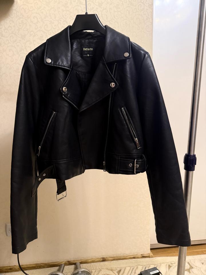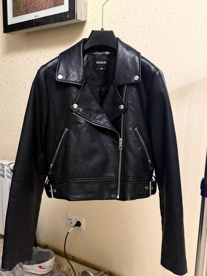 Косуха кожзам укороченная DeFacto. Размер М. Аккуратная, миниатюрная. Единственная потертось на затылке воротника, на фото можно увидеть. А так где руки, и снаружи выглядит хорошо. Артикул: 567191