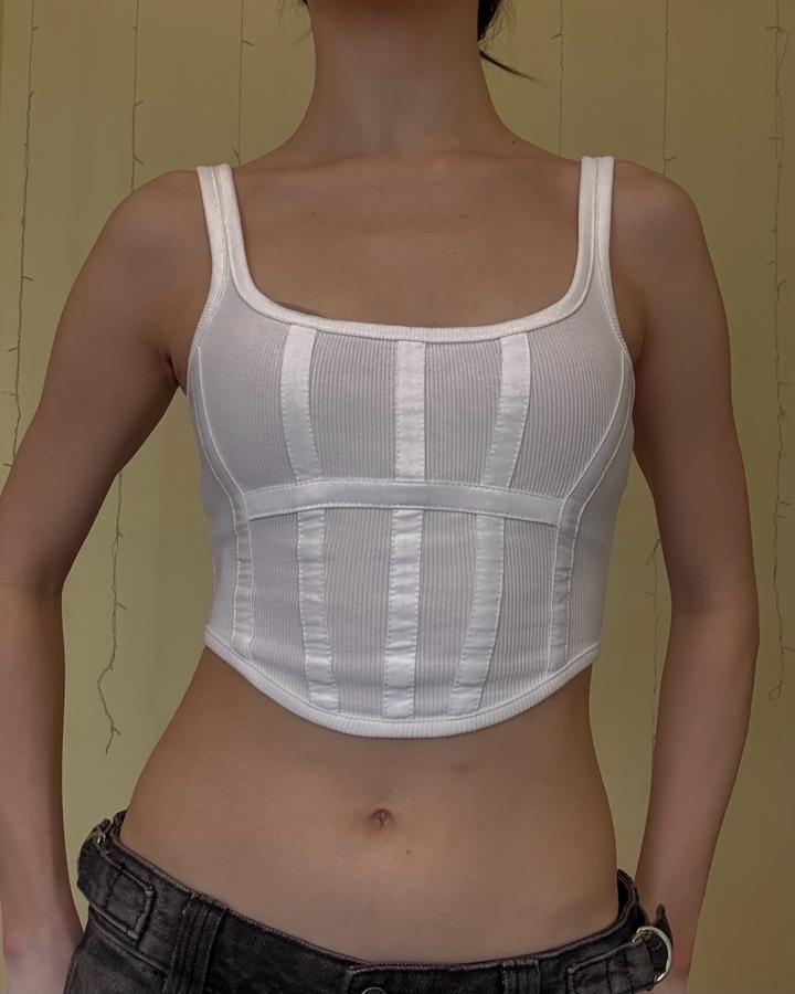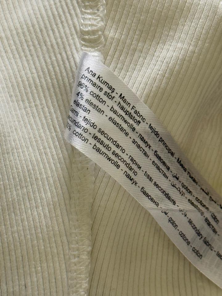 Белый дышащий топик из хлопка. Похож на корсет засчет своего дизайна, по фигуре облегает плотно. Сзади на замке, замок работает как новый. Сам топ сохранил свой цвет, носился не часто, состояние очень хорошее. Покупала в Турции 🫧 Мои параметры: 80 грудь - 65 талия. Артикул: 567375