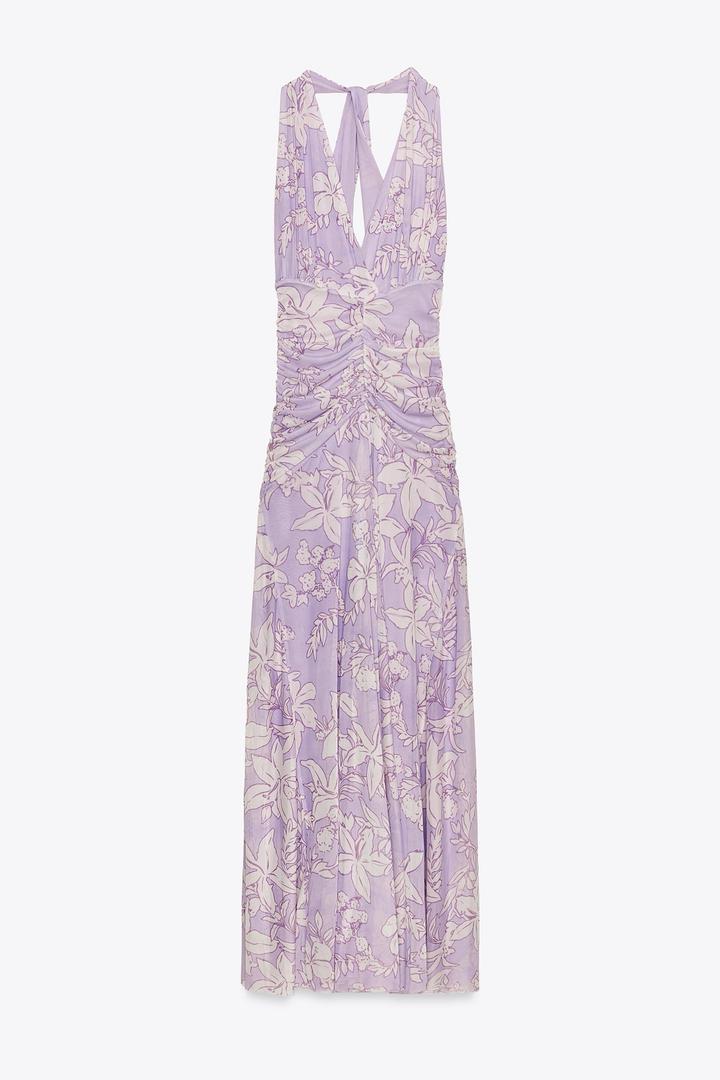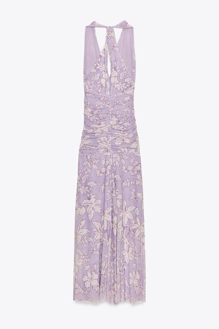 Макси-платье из тюля с принтом от Zara с длинным завязывающимся воротником и деталью сборки Новое с биркой,не подошло по фигуре, на последней фотографии как оно выглядит на девушке с размером L Артикул: 567468