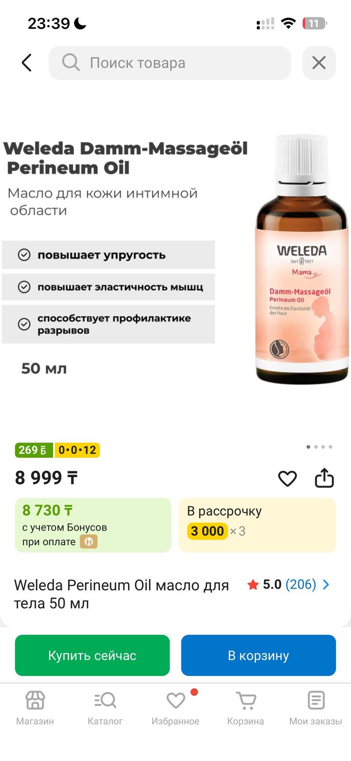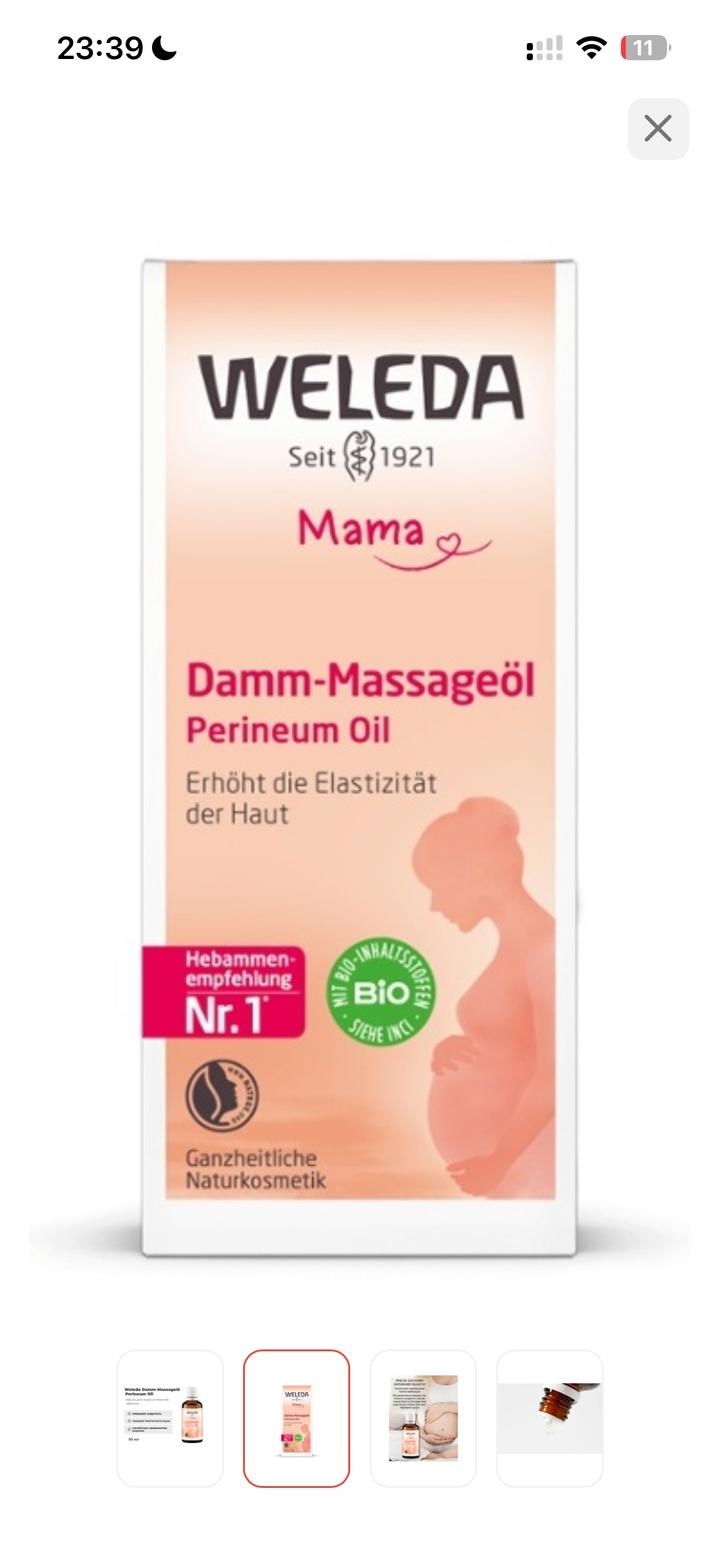 Weleda Perineum Oil масло для тела 50 мл Купила в роддом, но забыла про него 🤦🏻♀️ Не вскрывали, но без коробки. 100% натуральный продукт для подготовки интимной области к родам. Специальный массаж с маслом Weleda подготавливает область промежности к высоким нагрузкам, повышает упругость и эластичность мышц и способствует профилактике разрывов. Органическое масло сладкого миндаля и масло ростков пшеницы смягчают ткани и повышают их растяжимость. Артикул: 567537