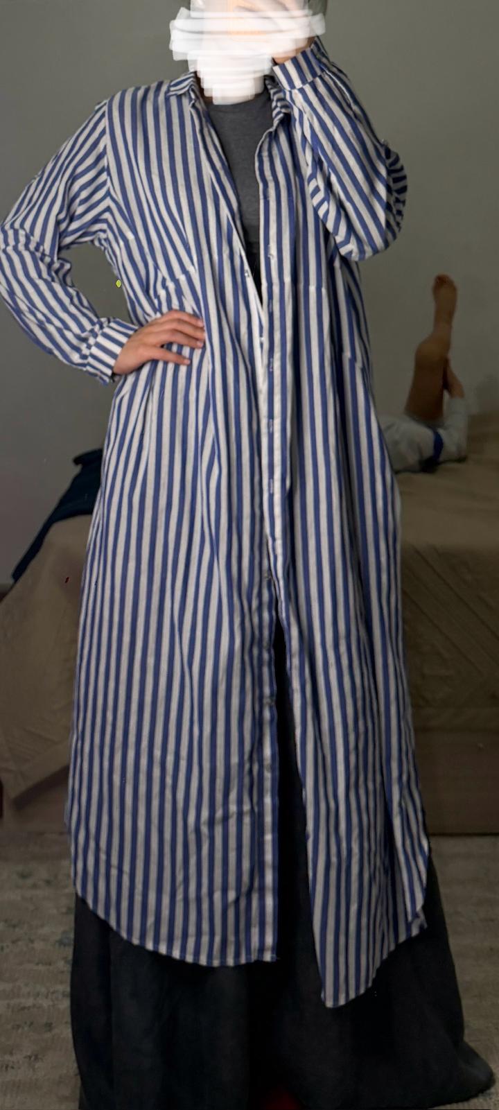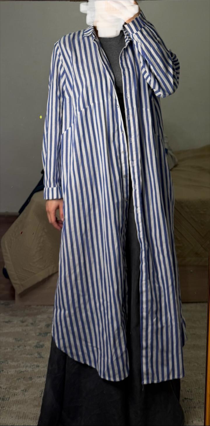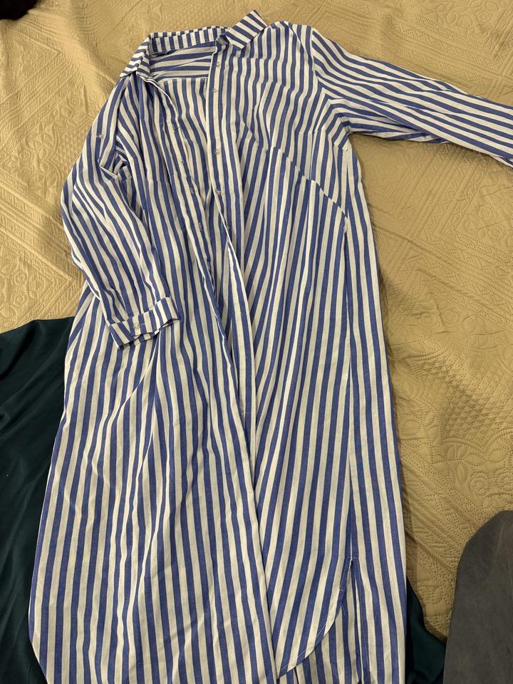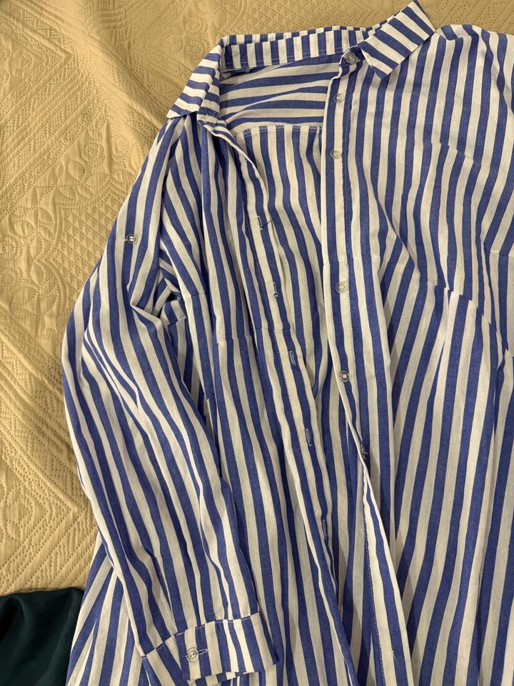 Рубашка из хлопка , в полоску белое с голубым , размер оверсайз. Длина на рост 169миди, состояние классное Артикул: 567545
