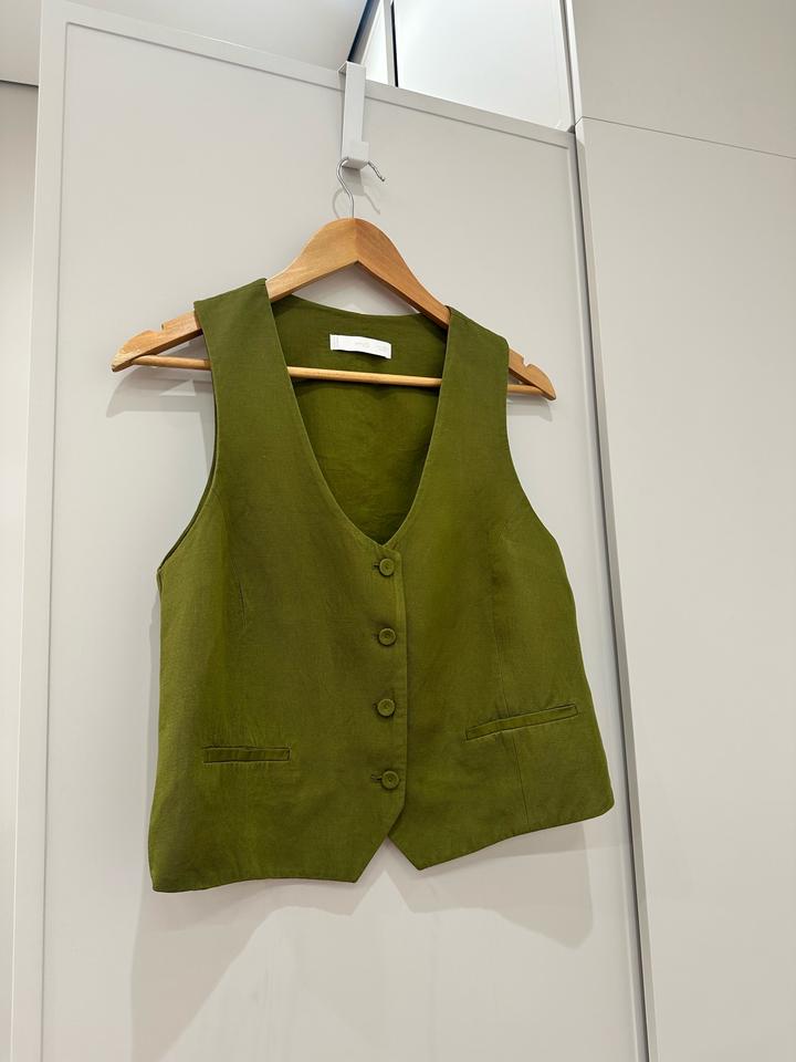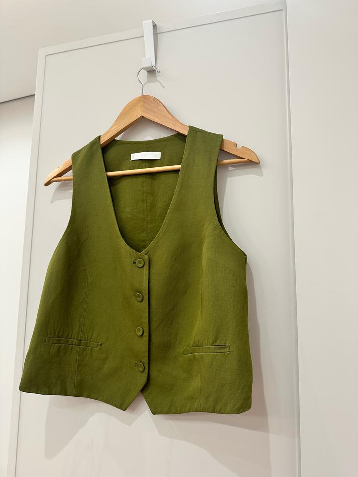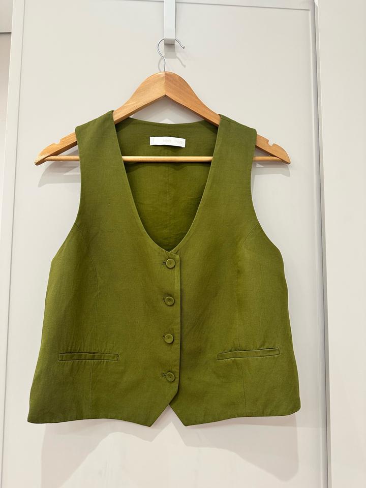 Льняная жилетка Mango в красивом оливковом цвете на хлопковом подкладке,размер L (маломерит,подойдет на размер М) Артикул: 567665