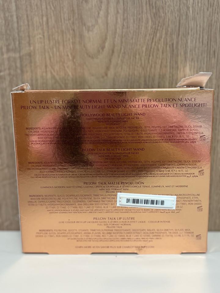 Новый набор самых популярных продуктов Charlotte Tilbury🔥 только помада немного деформирована (она новая, видимо заводской брак). И коробка сверху помята. Внутри мини версии хайлайтеров двух оттенков pillow talk и spotlight, мини помада matte revolution in pillow talk и полноразмерный блеск для губ. Артикул: 567879