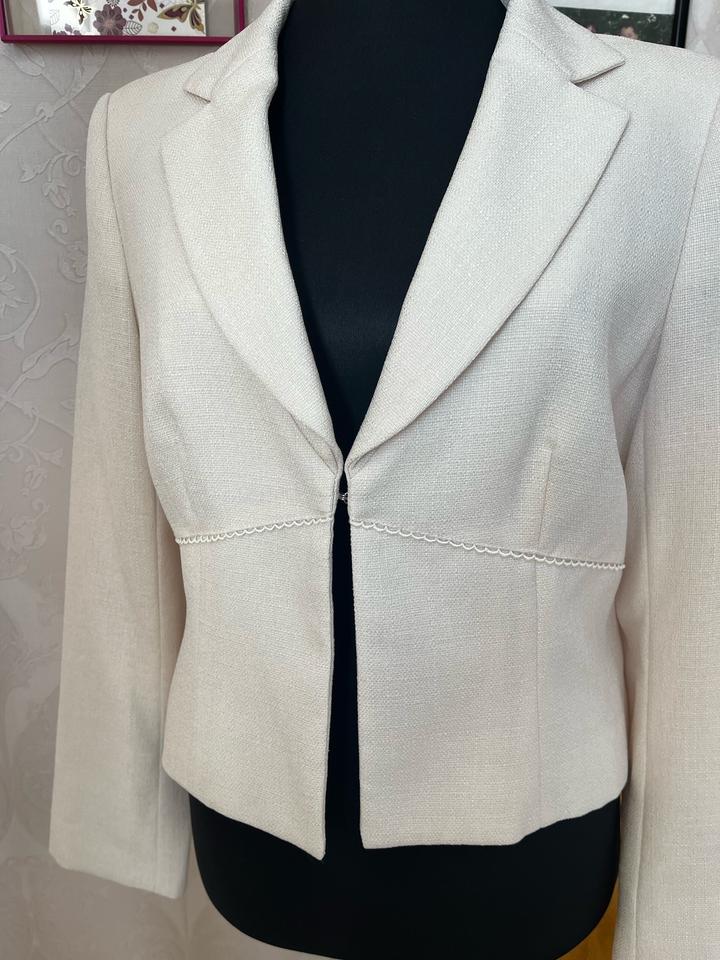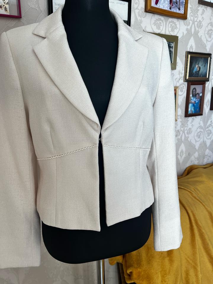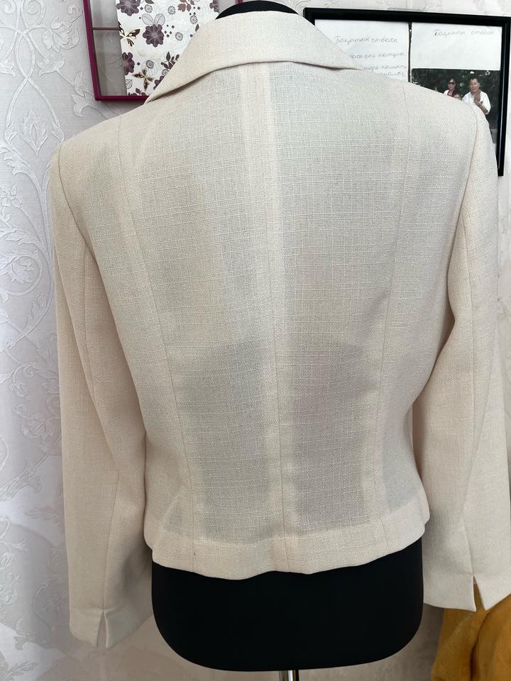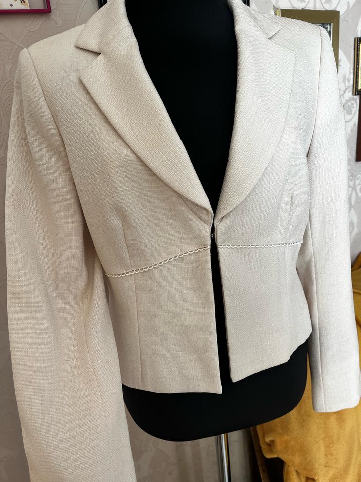 Летний короткий пиджак, цвет: слоновая кость. Очень хорошего качества, не ношенное, красиво подчеркивает линию талии Артикул: 567885