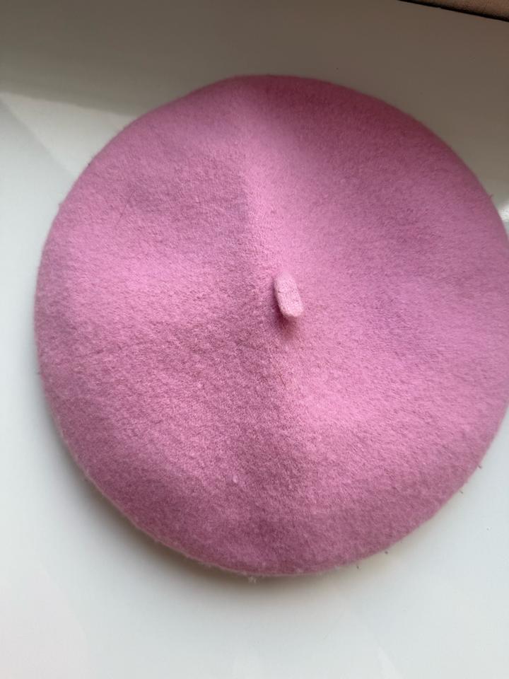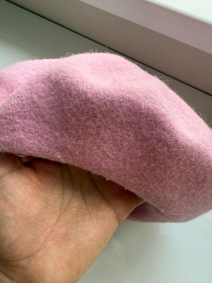 Розовая шерстяная беретка-