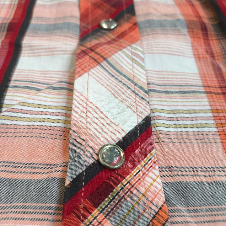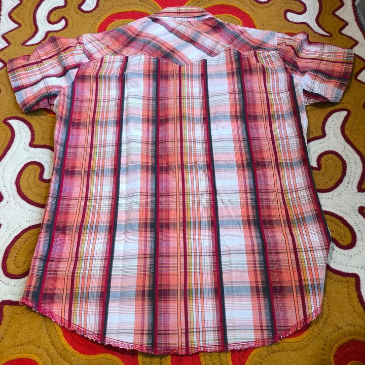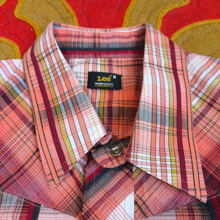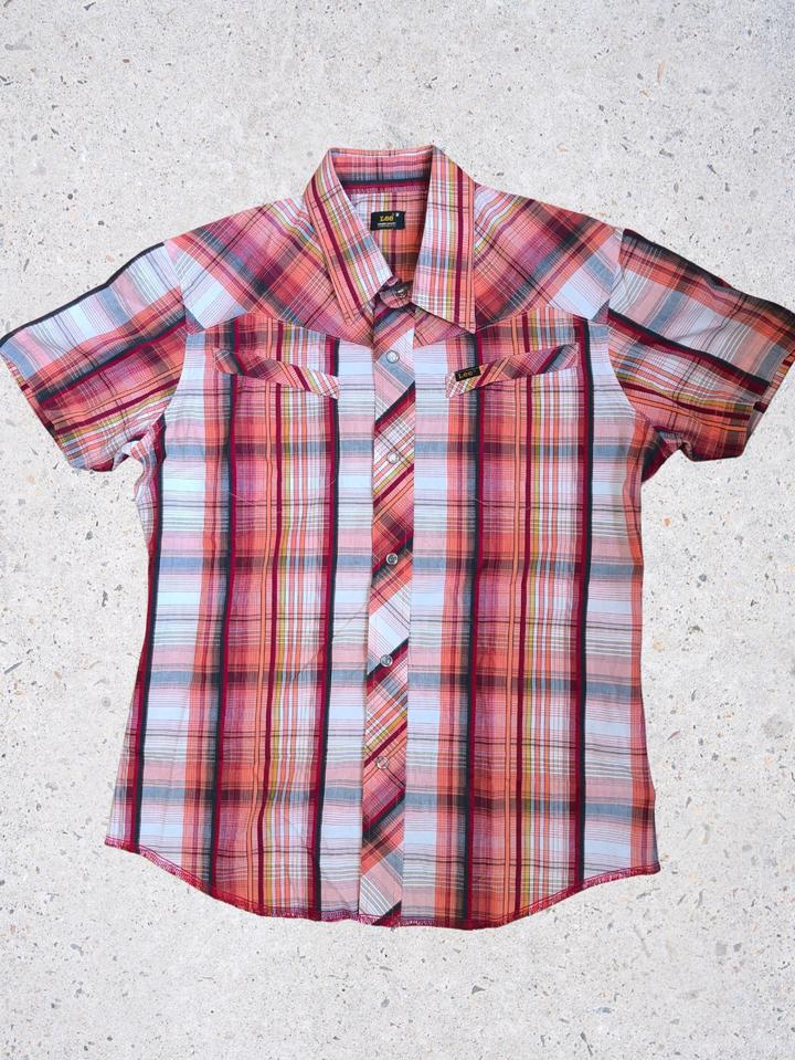 🔺Рубашка от LEE Тип изделия: Мужская винтажная рубашка в клетку от бренда Lee. Модель выполнена в классическом стиле вестерн («ковбойка»), что подчеркивается характерной кокеткой и использованием кнопок вместо обычных пуговиц. Особенности модели Стиль: Ковбойская рубашка (Western Shirt) с коротким рукавом. Детали: Застегивается на перламутровые кнопки (pearl snaps). Материал: Рубашка изготавлена из 100% хлопка или смеси хлопка с полиэстером для легкости в уходе. Артикул: 567963
