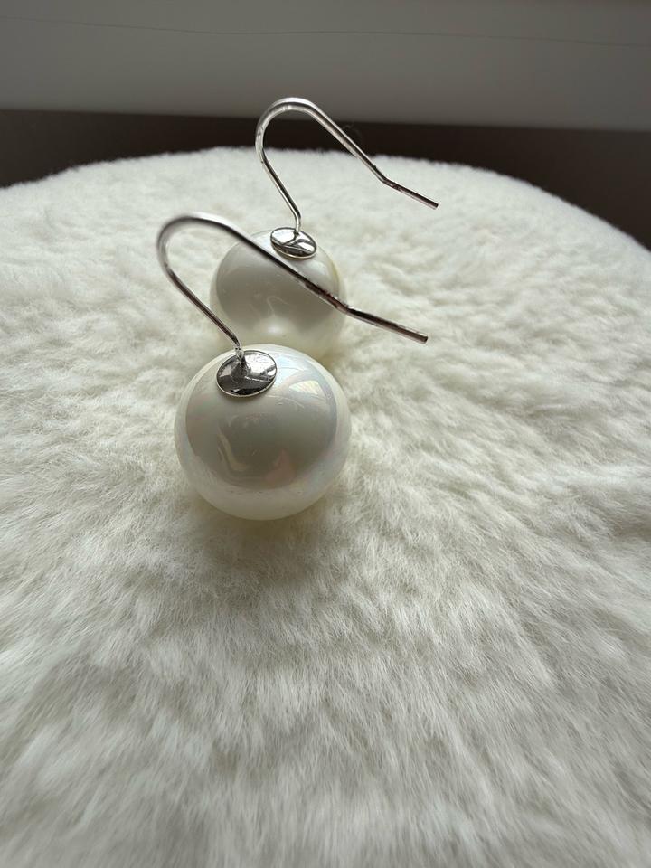 Сережки перламутрового цвета, переливаются, металл серебристого цвета. Артикул: 567970