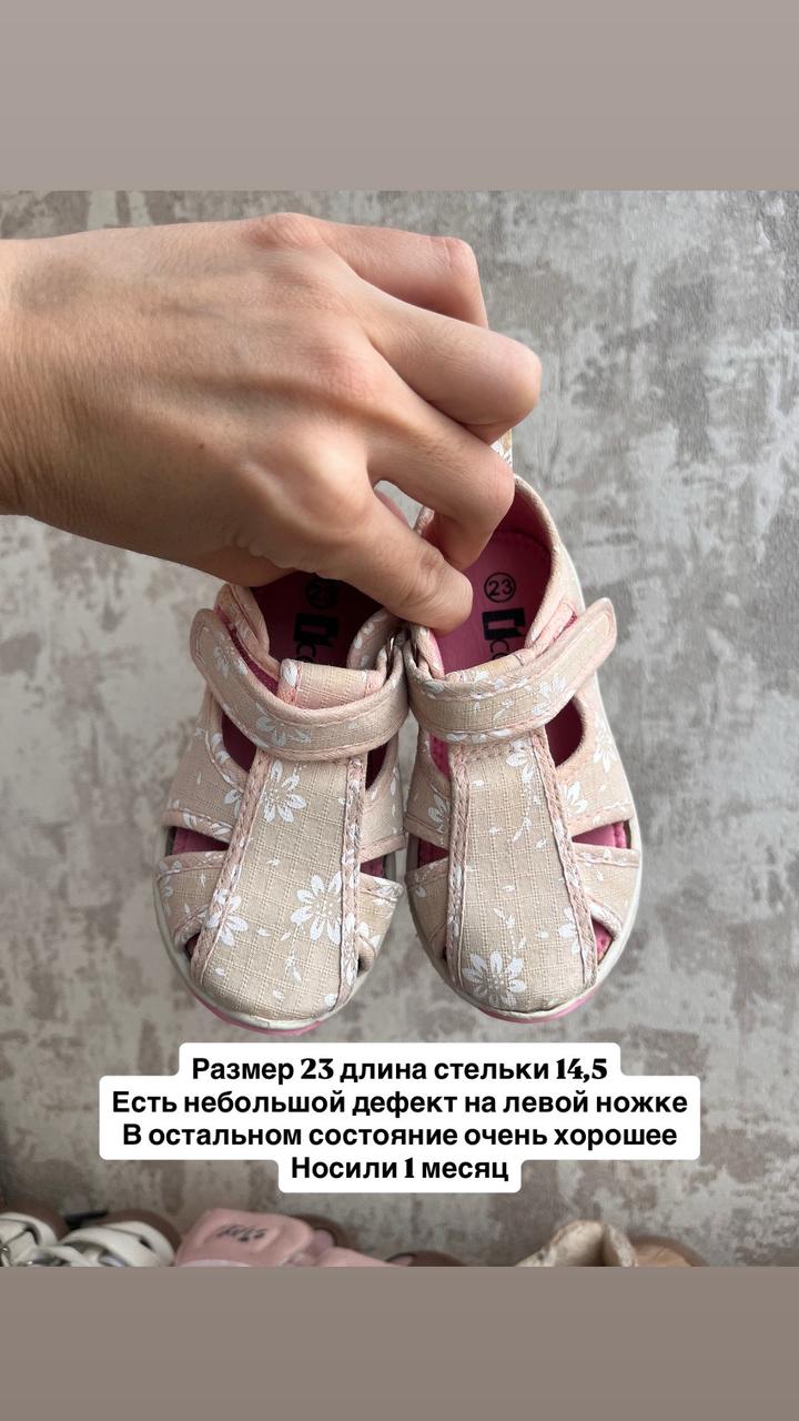 Продам обувь, все в хорошем состоянии, носили всю обувь совсем недолго т.к ножки быстро растут, не изношенные, описание размеров добавила на фотографиях, у всех гнется носочек, ребенку комфортно было ходить. Занимают место, хочу продать все в одни руки. Белые сандалии и розовые сабо отдам в подарок Артикул: 567978