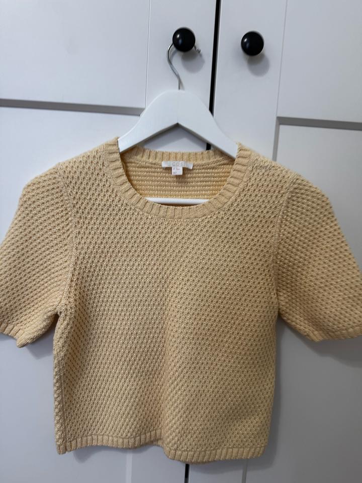 Cos кофточка, трикотаж , хлопок, одевала пару раз, в хорошем состоянии , есть небольшой дефект в в правом плече , в целом мало заметен Артикул: 567984