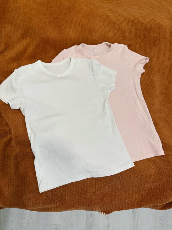 Обе футболки размера М, сами модельки идут более широкие, а так отличные для базового гардероба. Цена указанная за две футболки‼️ Супер нежно розовый и белый цвет футболок Артикул: 568097
