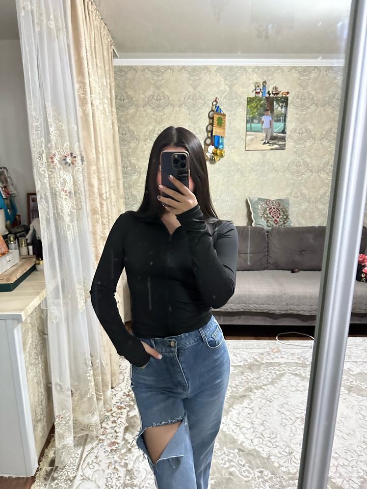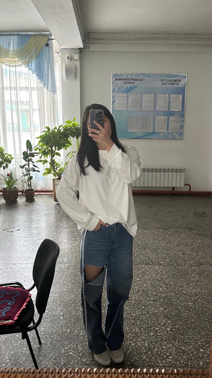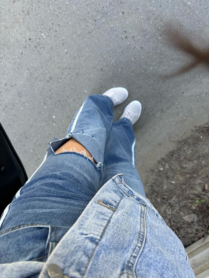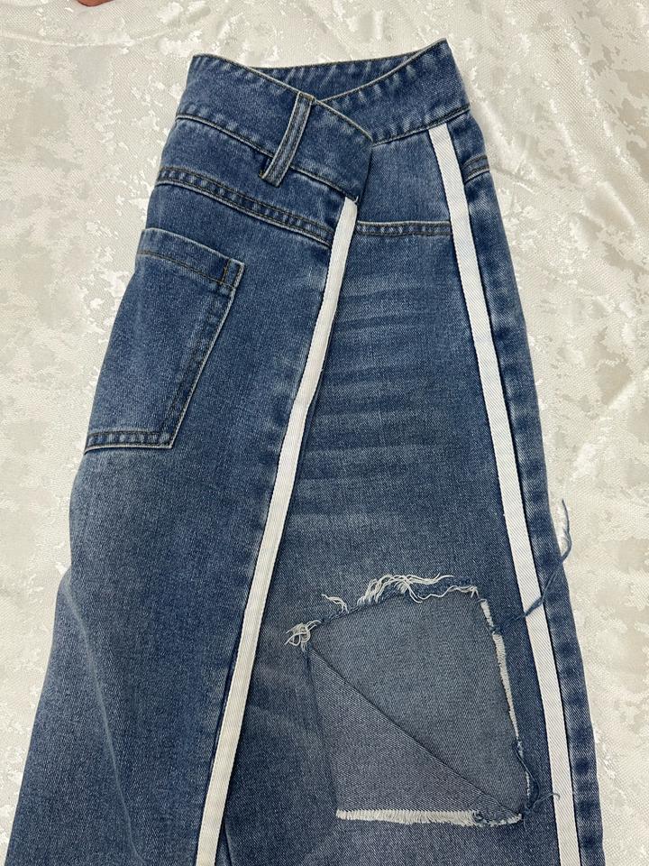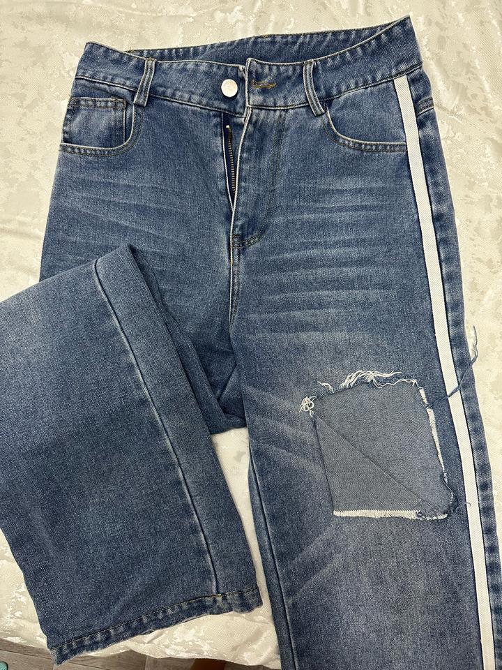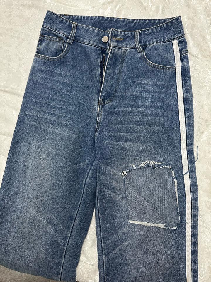 Прямые джинсы Wide Leg с лампасами и рванинойS/M